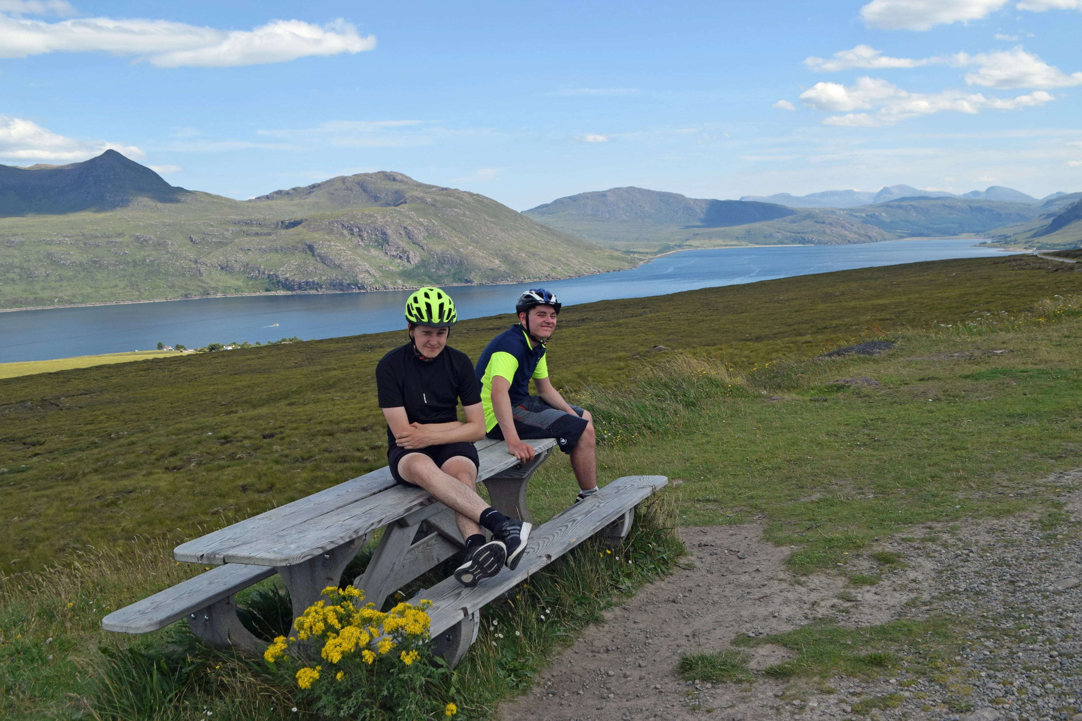 Jude and Dillan at the Little Loch Broom viewpoint near Badcaul