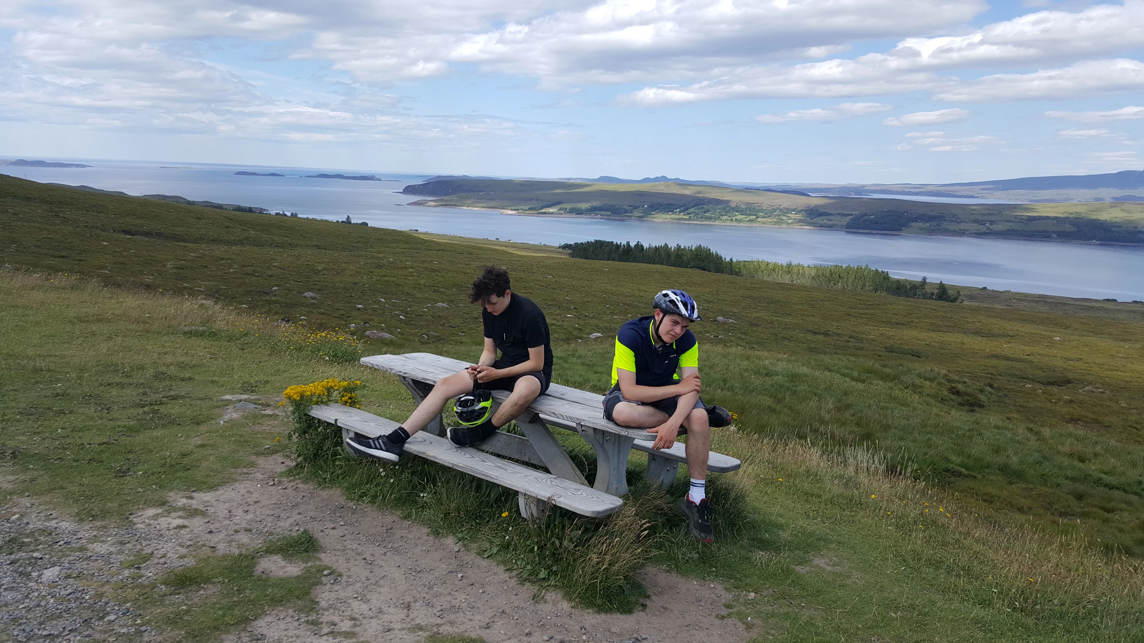 Jude and Dillan at the Little Loch Broom viewpoint near Badcaul
