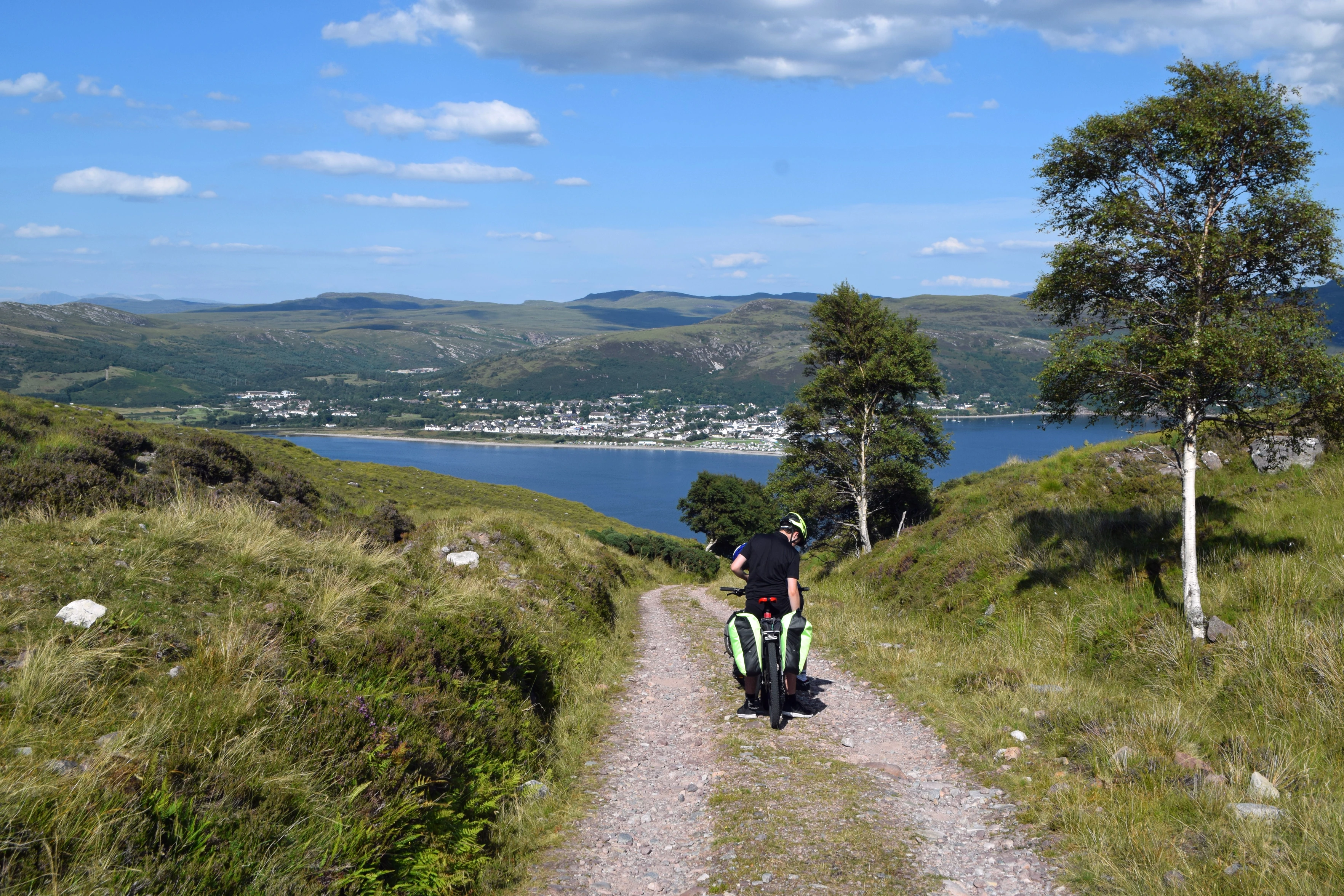 Descending to Loch Broom, with Ullapool opposite—37.6 miles into the ride