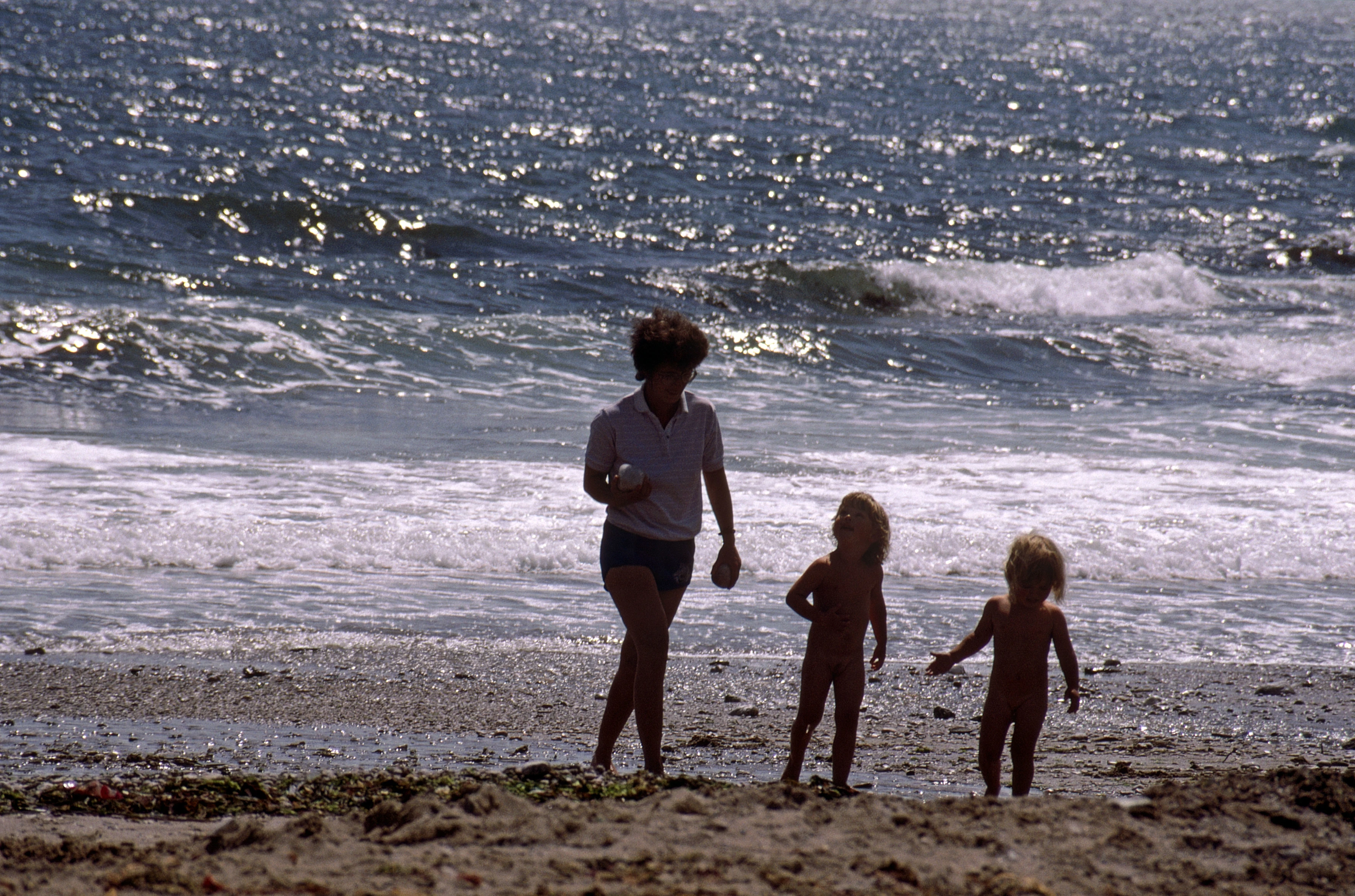 Jenny Quick with her children on Lannacombe Beach.