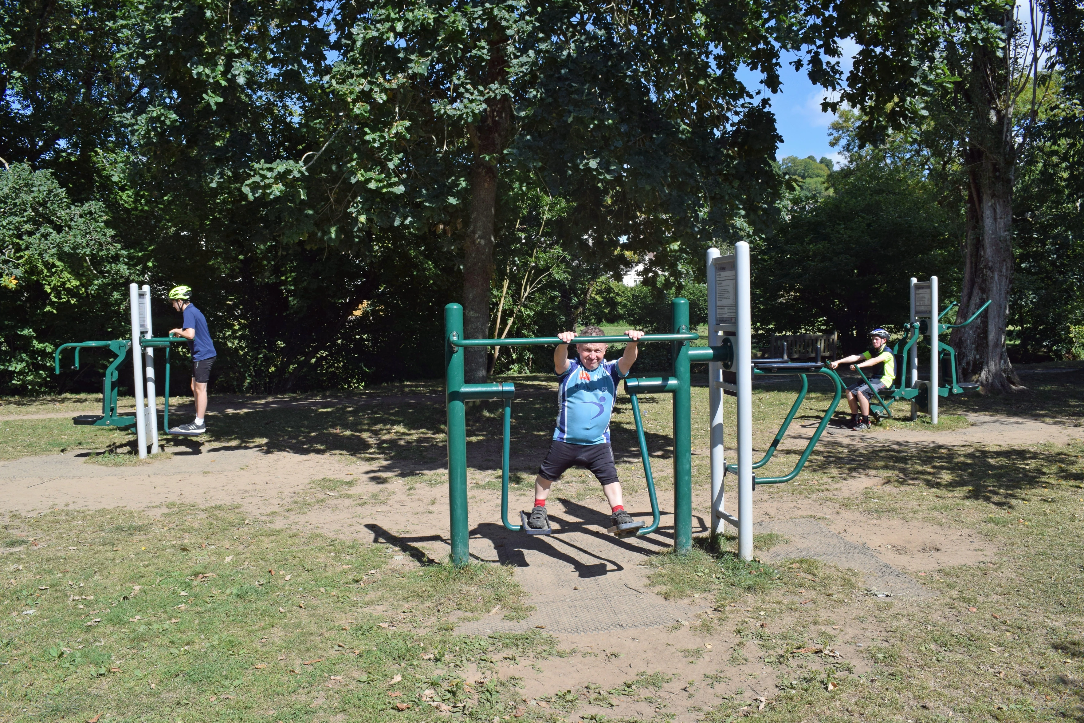 Messing about on the outdoor gym by the river, Bovey Tracey