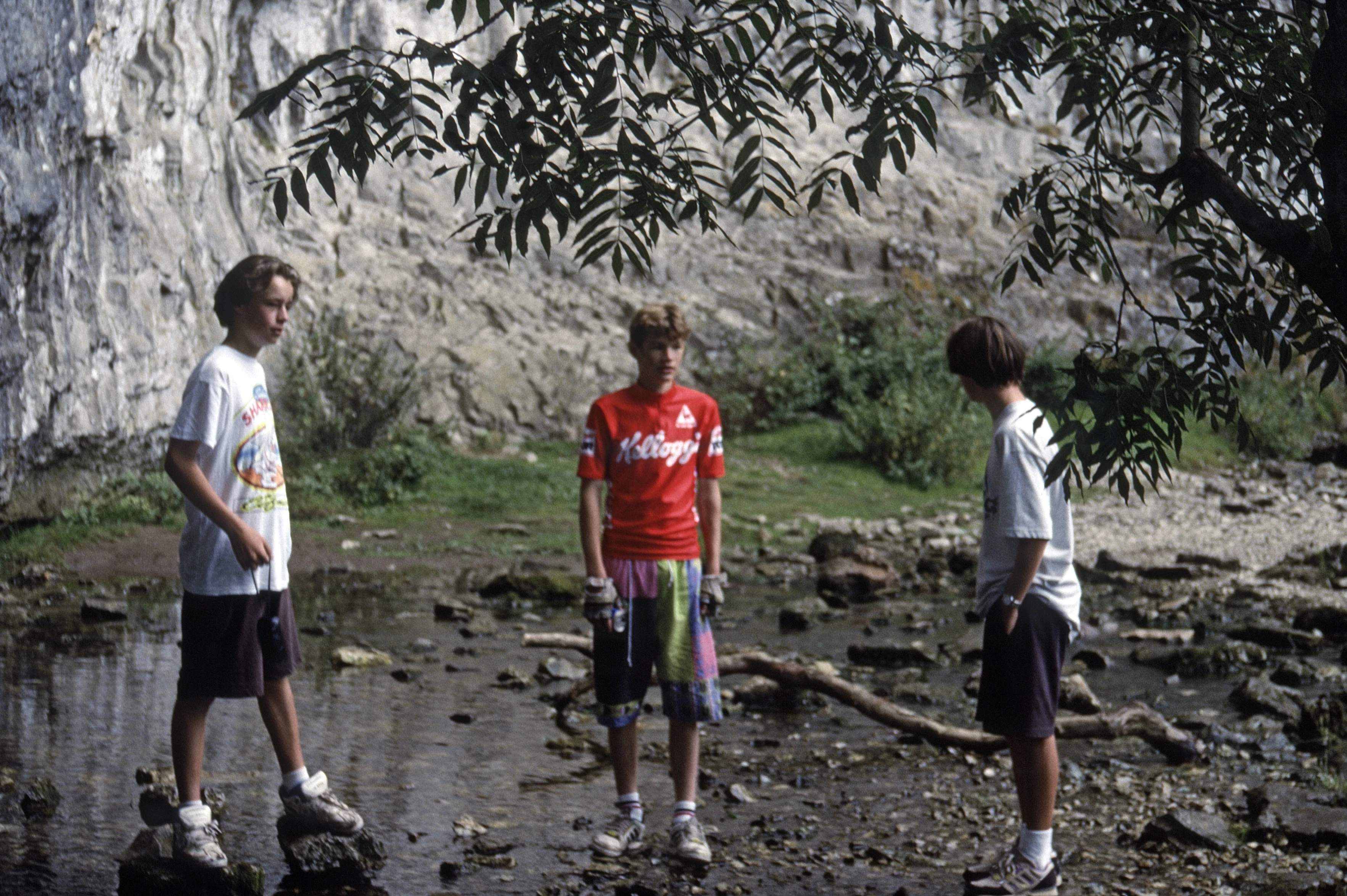 Tim Guard, sandwiched between the Crabtree twins at Malham Cove.