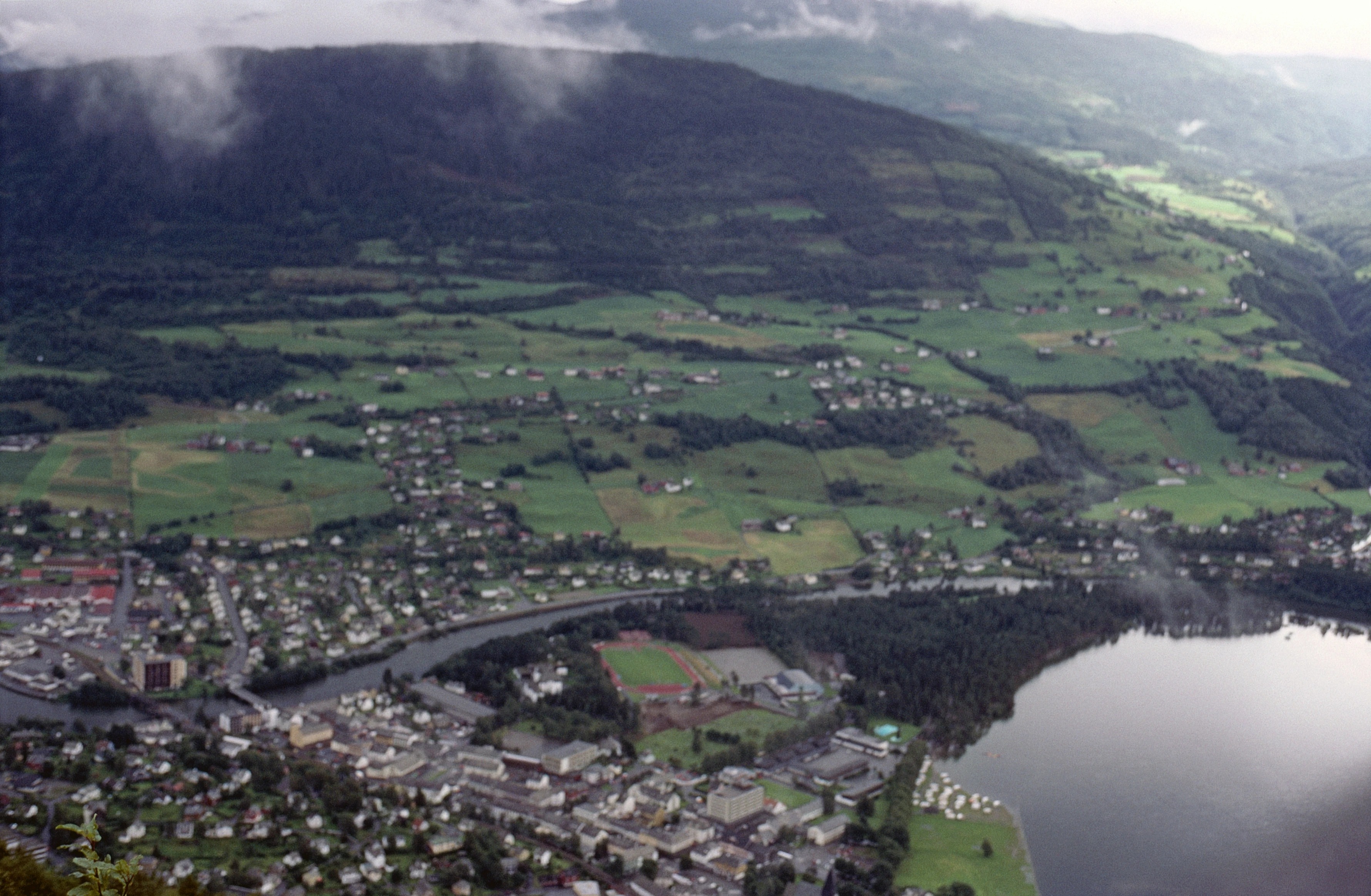 Descending the cable car: Voss and the north‑eastern end of Vangsvatnet.