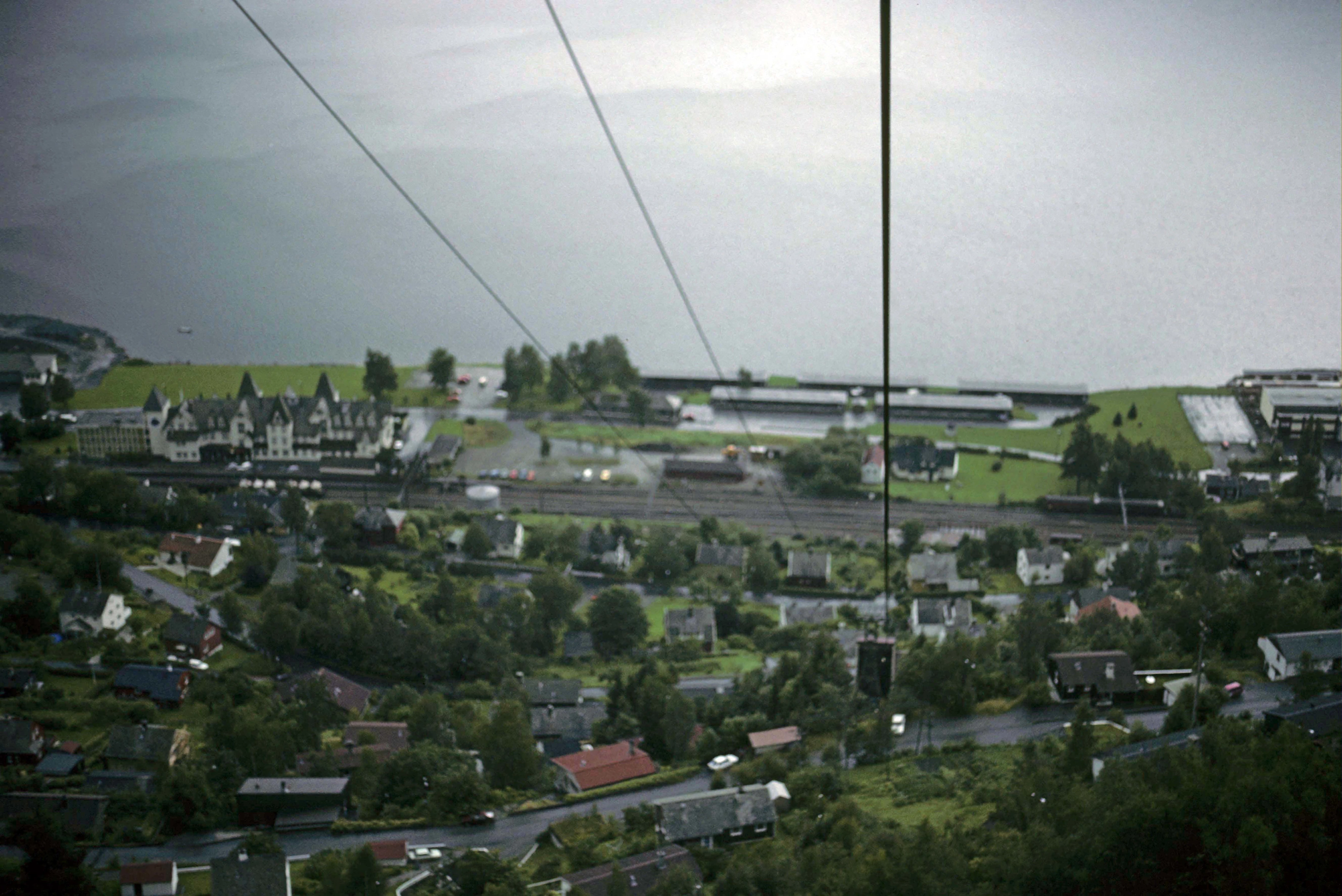 Looking back to Voss and the lake from the Hangursbanen to Mount Hangur.