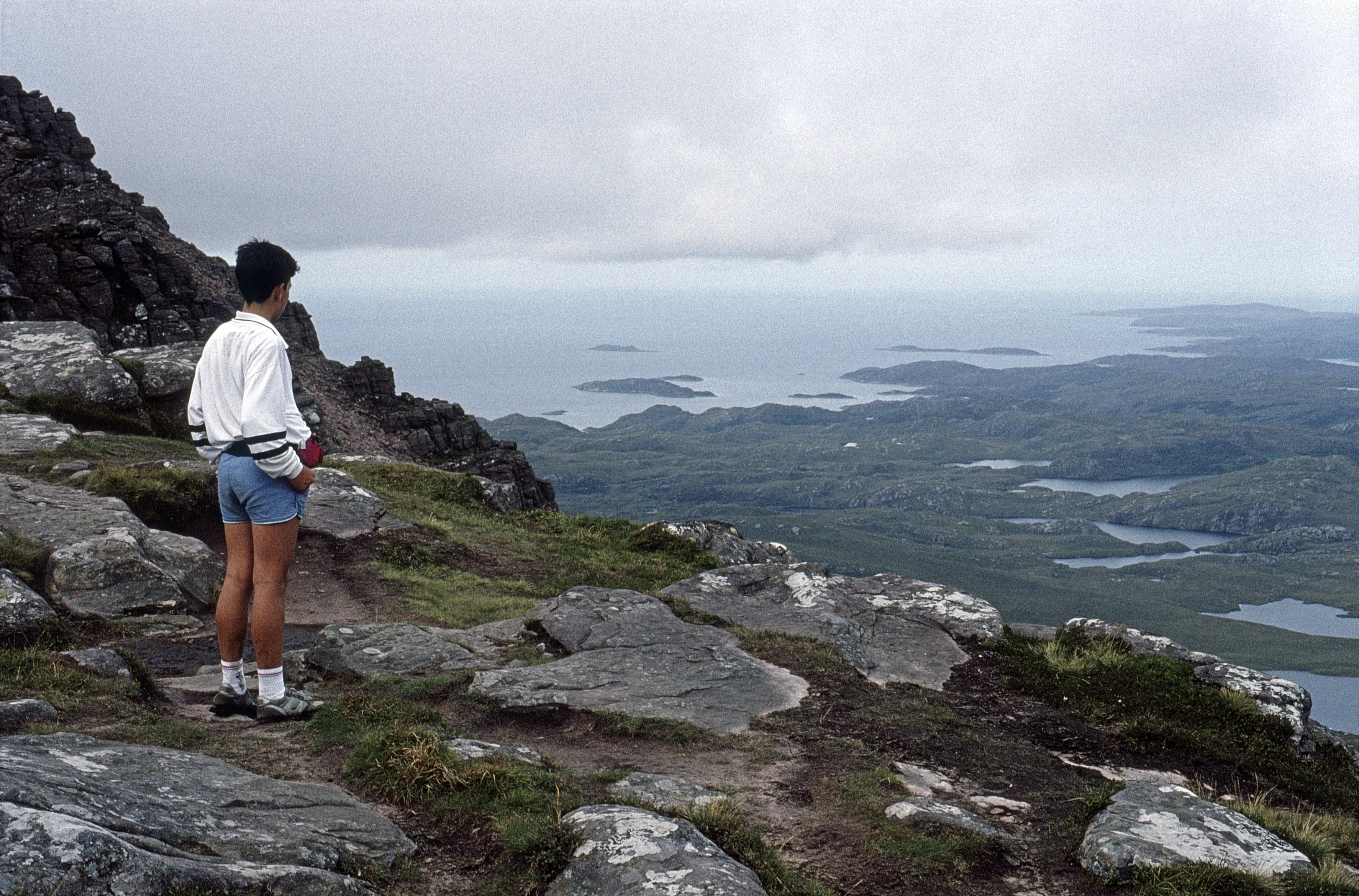 Paul admires the view from Stac Pollaidh, looking north-east to Enard Bay, Lochinver and the Mad Little Road.