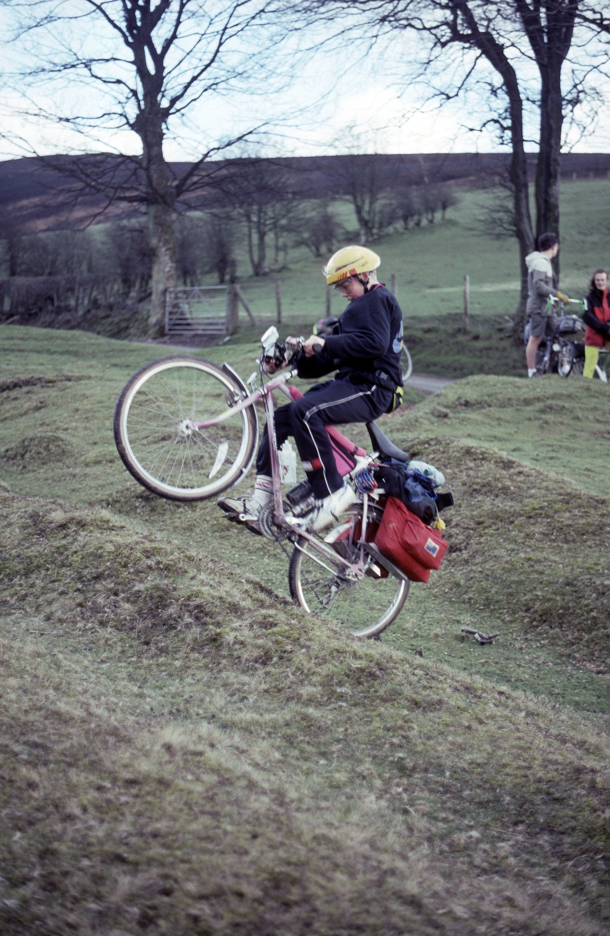 Joseph Bellows shows off his tricks by the road at Hill Castle, just before Glascwm