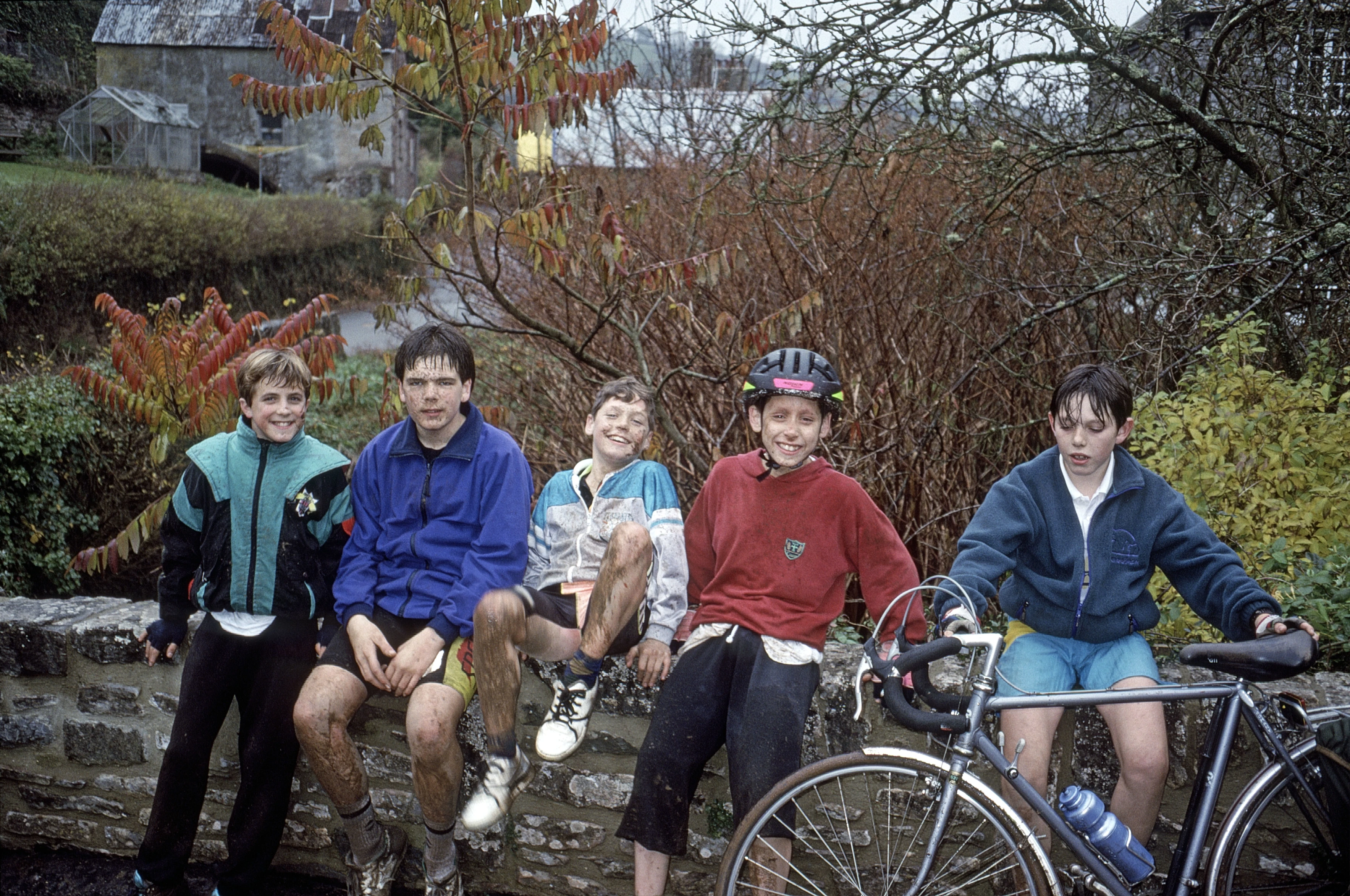 Plastered in mud on Tuckenhay Bridge below Corkscrew Hill: Chris Platt, Neil Ault, Eliot Wright, Paul Oakley and Richard Goss.