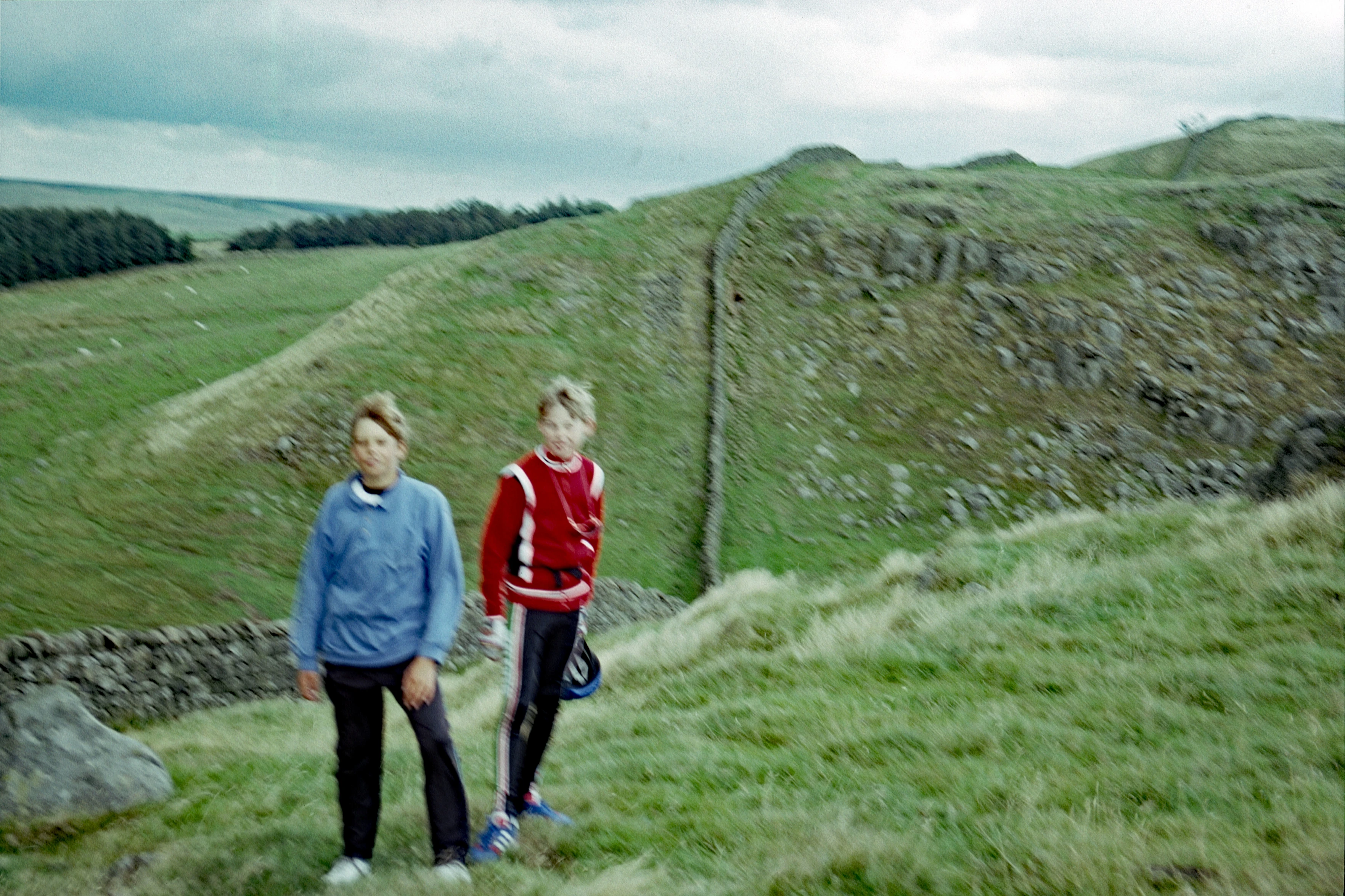Lukas and Matthew on Hadrian's Wall at Milecastle 41 near Haltwhistle.