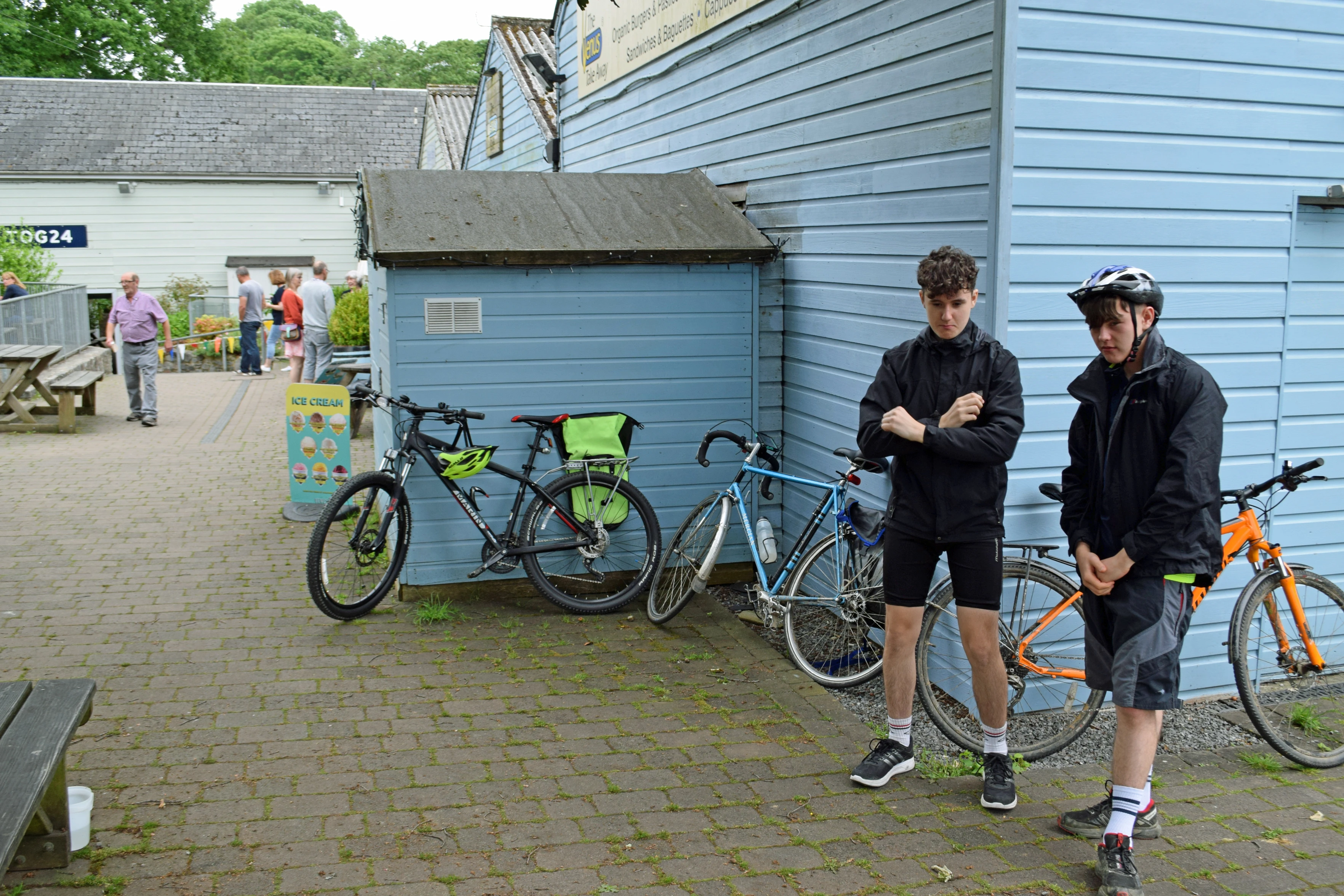 Jude and Dillan outside the Cider Press Centre, Dartington.