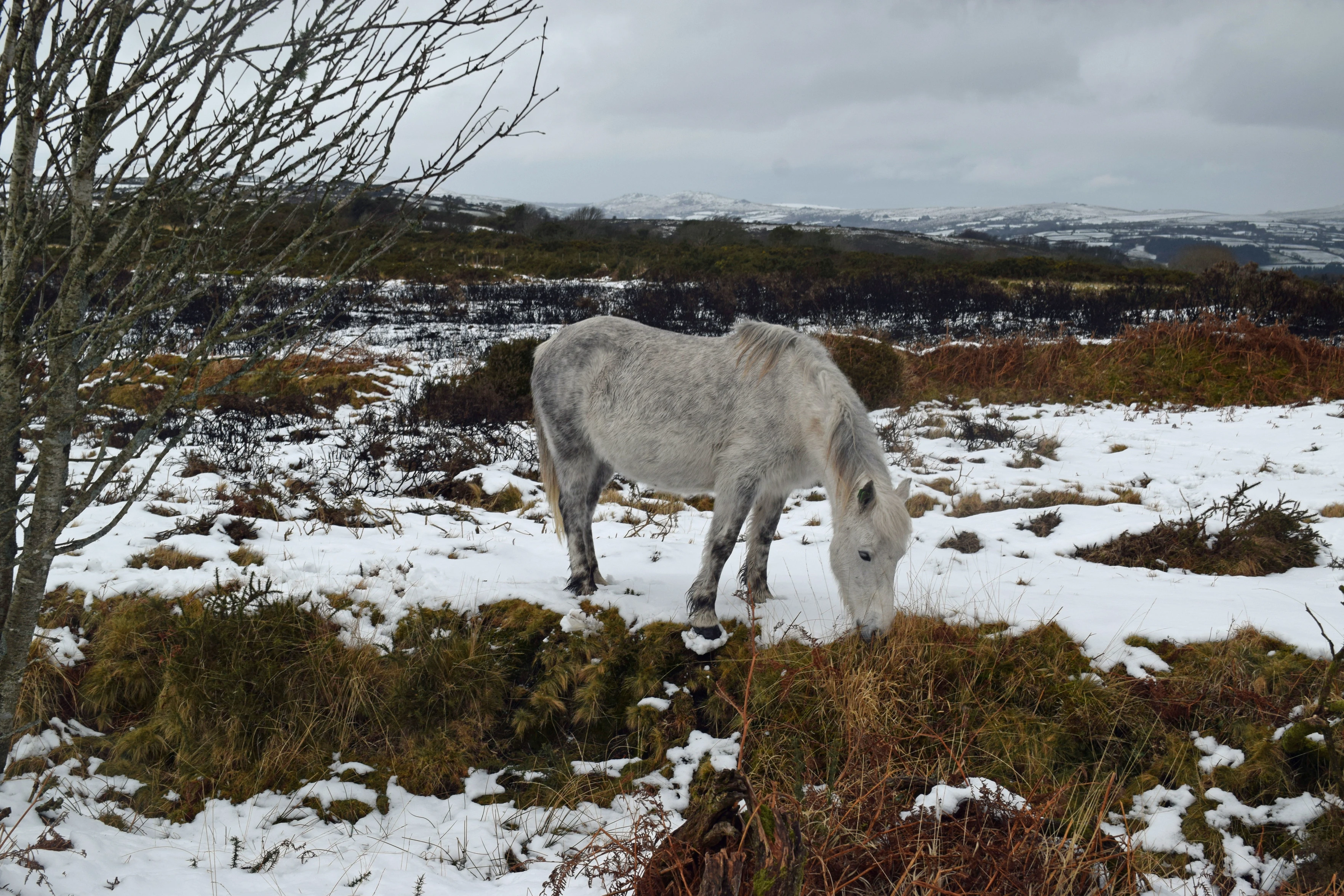 Moorland wildlife near Venford Reservoir, unfazed by snowballs.