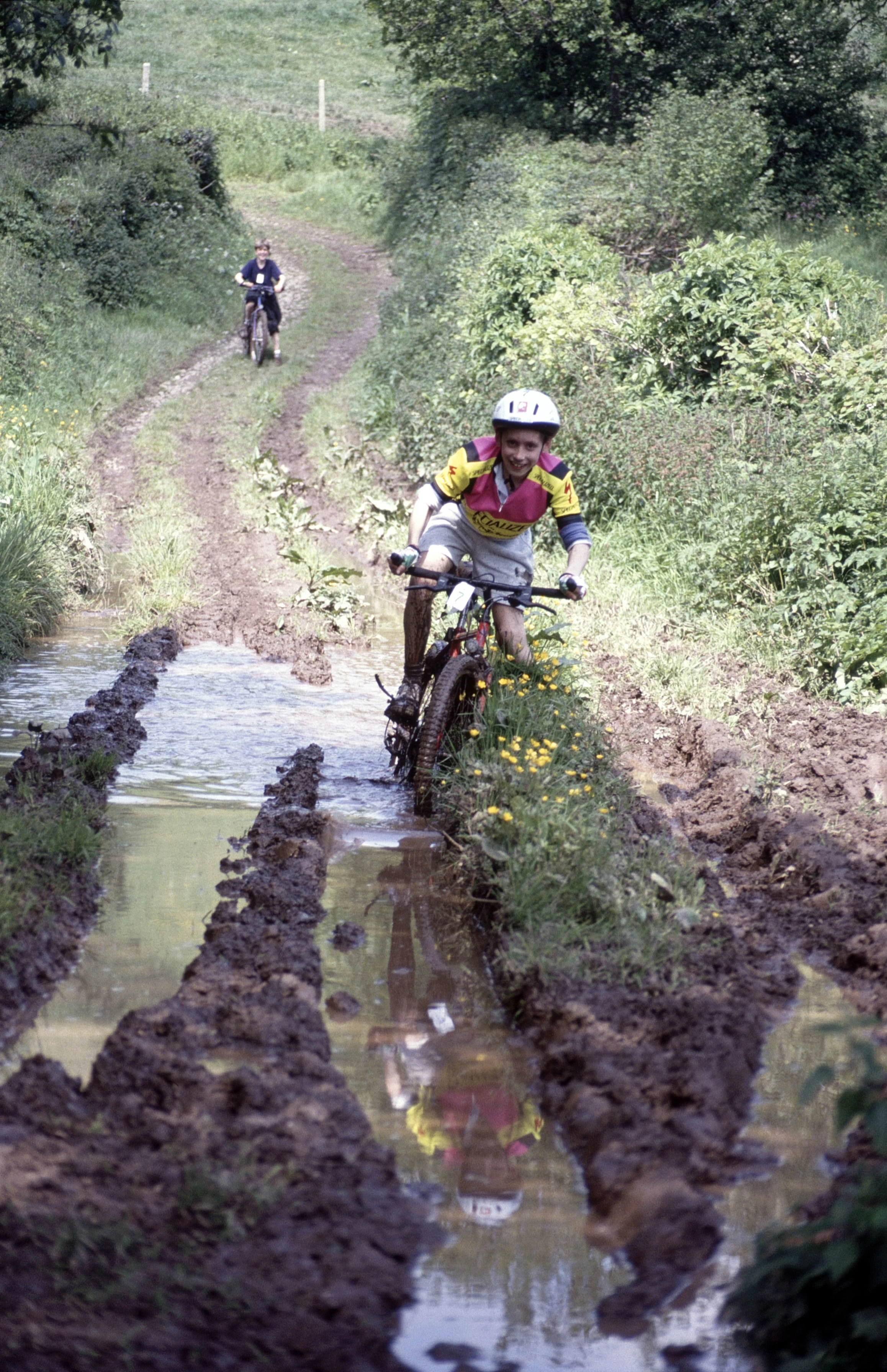Paul Oakley runs into difficulties as Chris Platt eagerly awaits his turn.