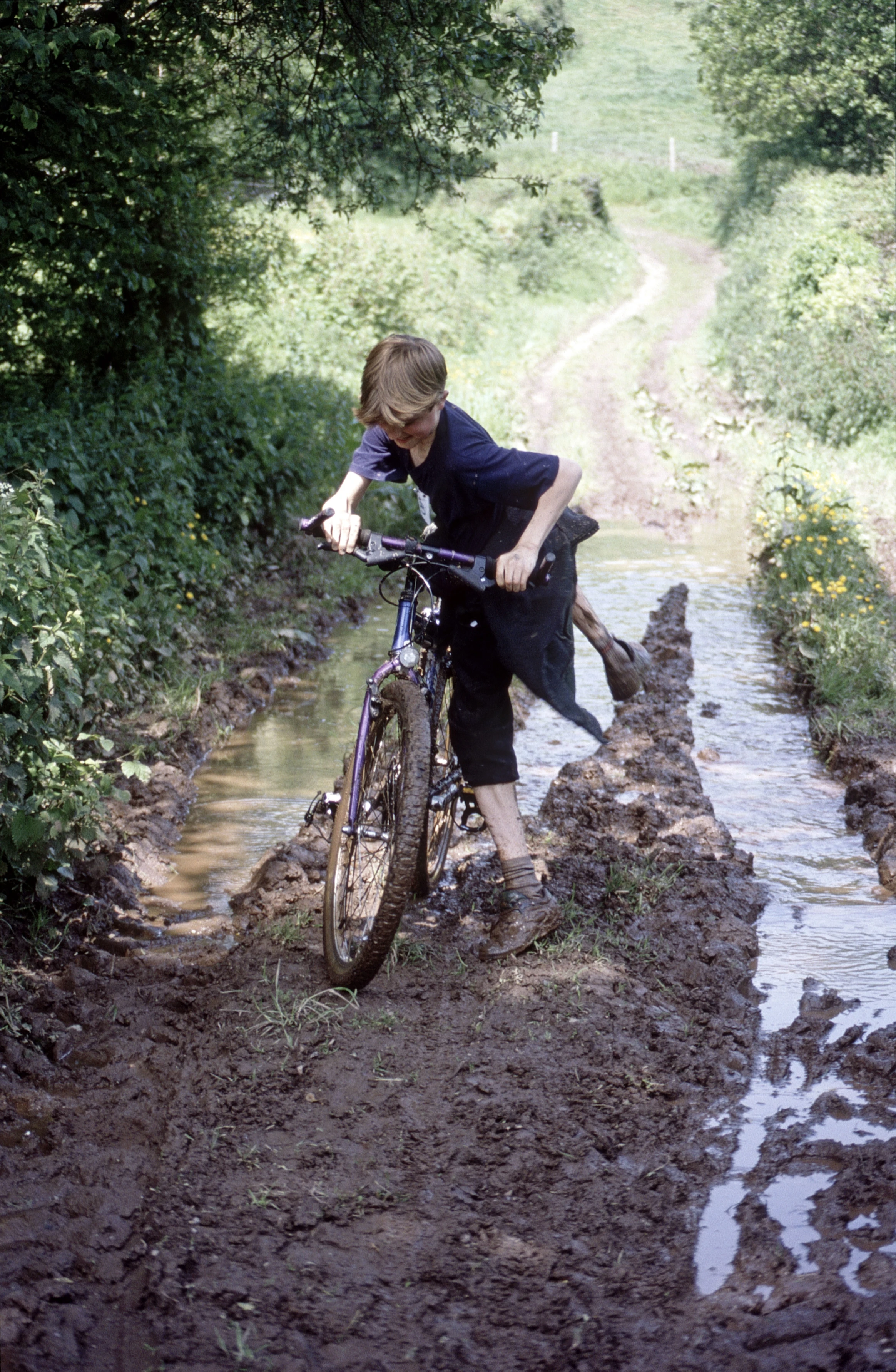 Chris remounts after wading through the quagmire.