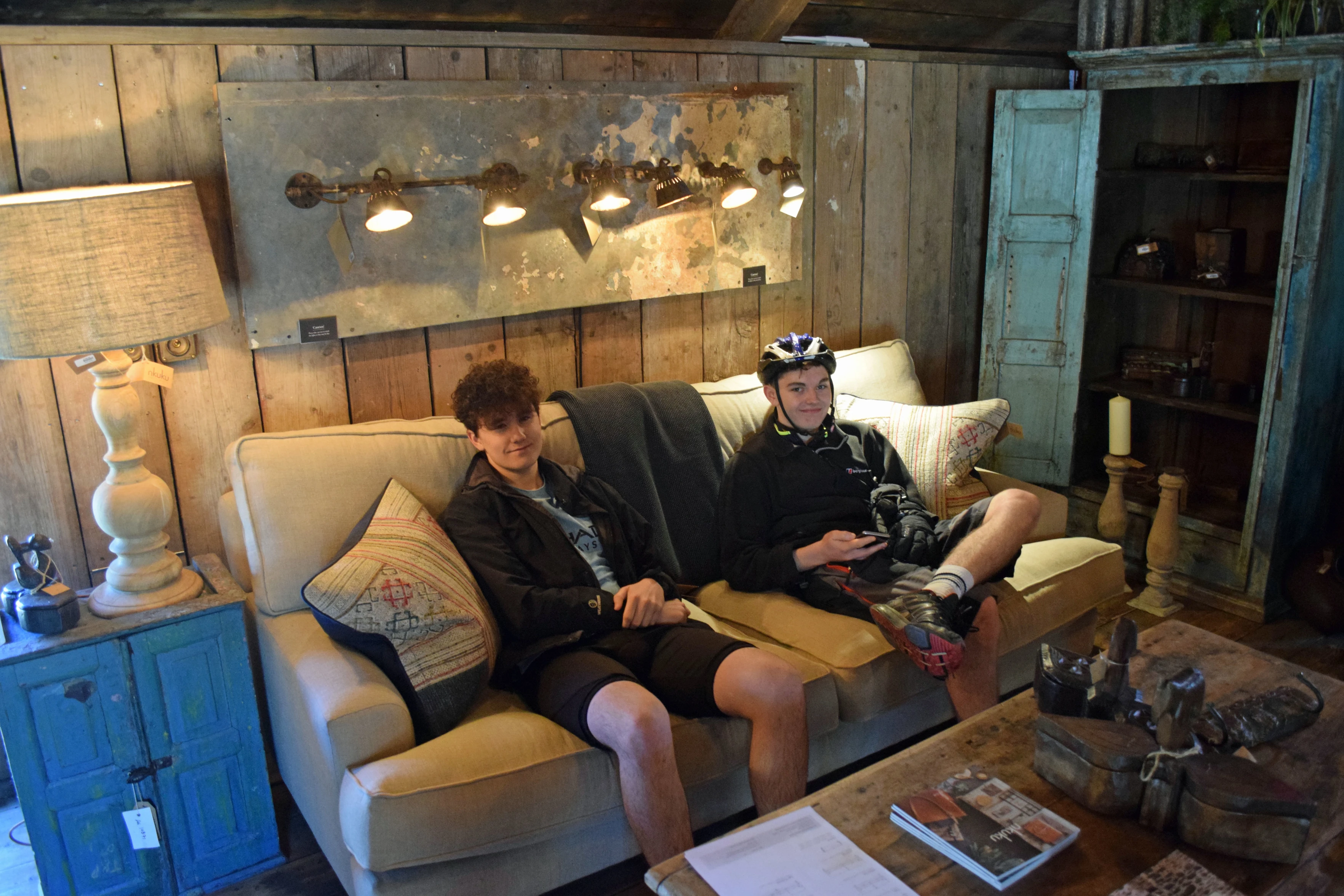 Trying out the furniture in Nkuku's attic showroom, Harbertonford