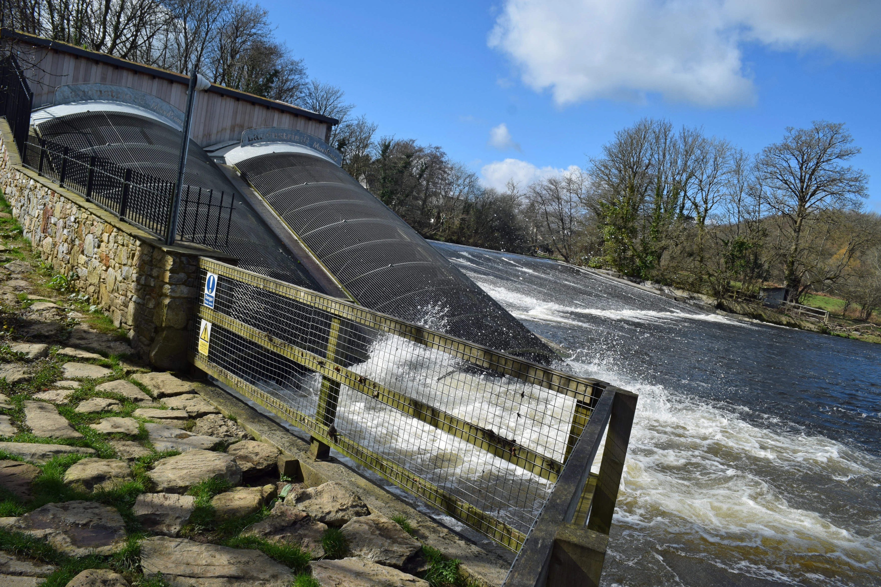 The hydro station on the River Dart at Totnes, in full flow after recent rains