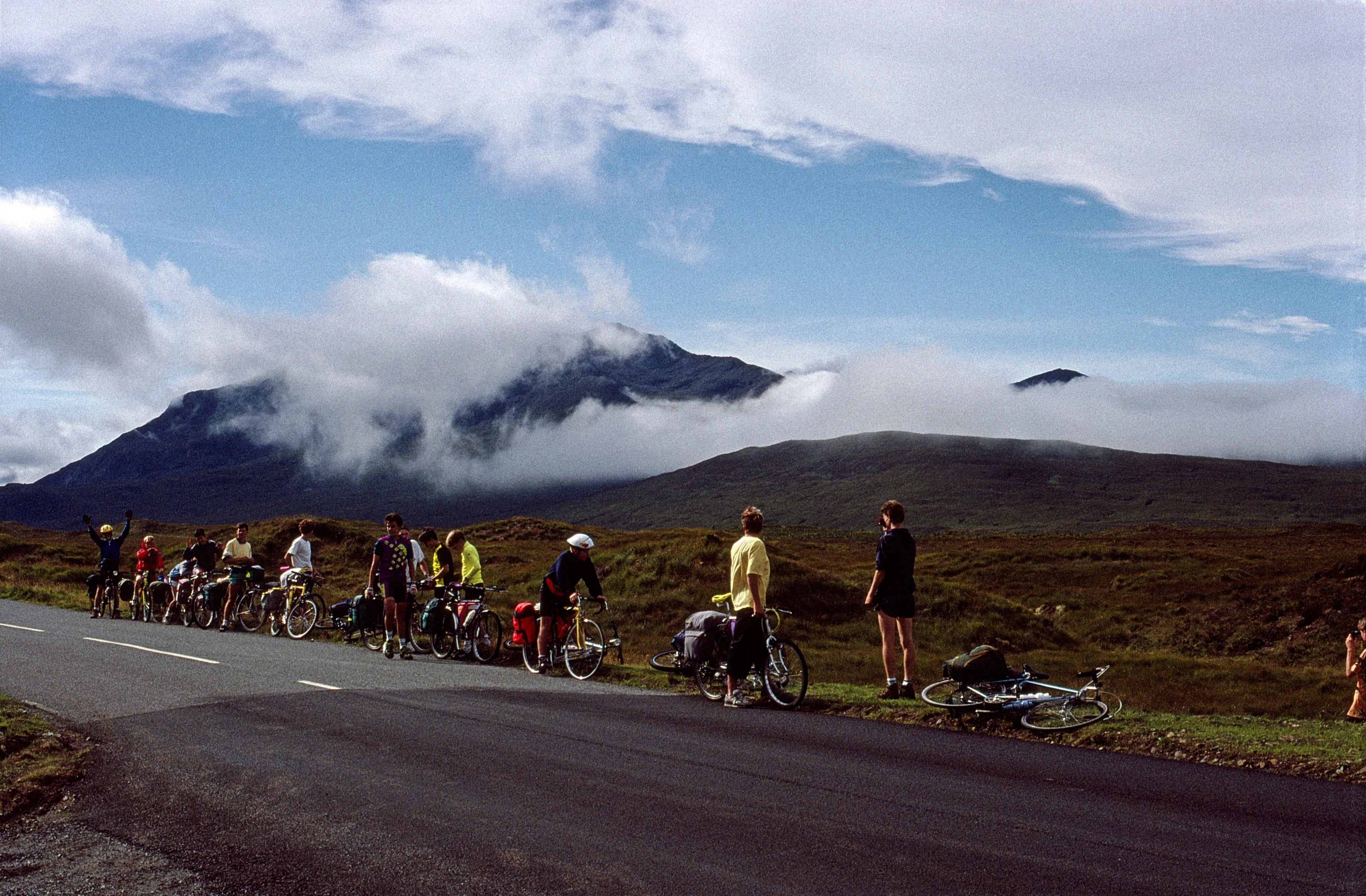 Pause on Glen Varragill after Sligachan, Portree road; hill clings to wispy cloud.