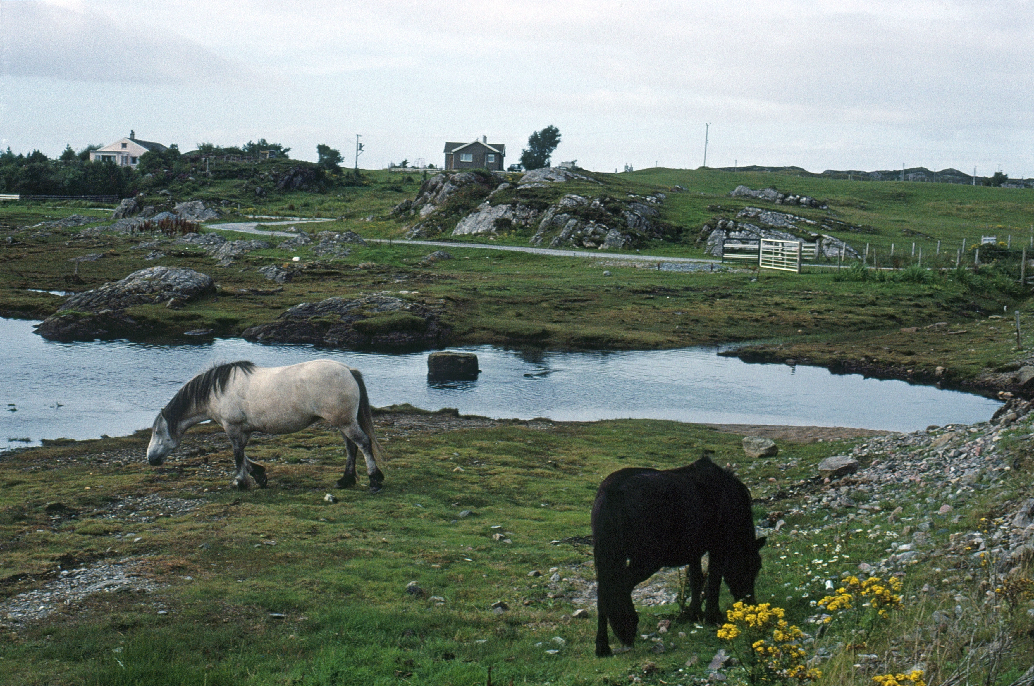 Ponies grazing by the River Alt Cam Carach, Bunacaimb.