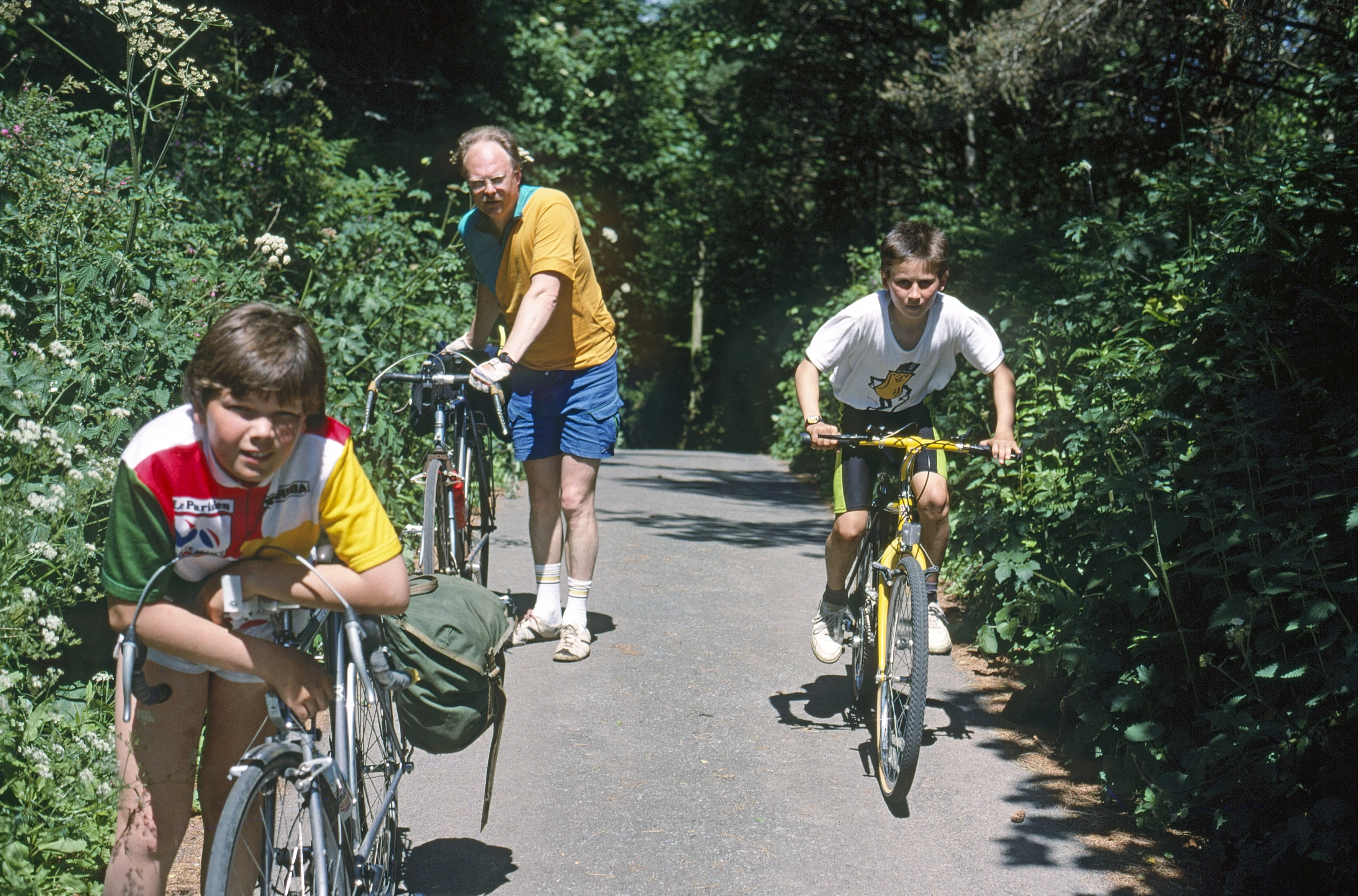 Neil, Dave and Tao on the steep final climb to Mothecombe.