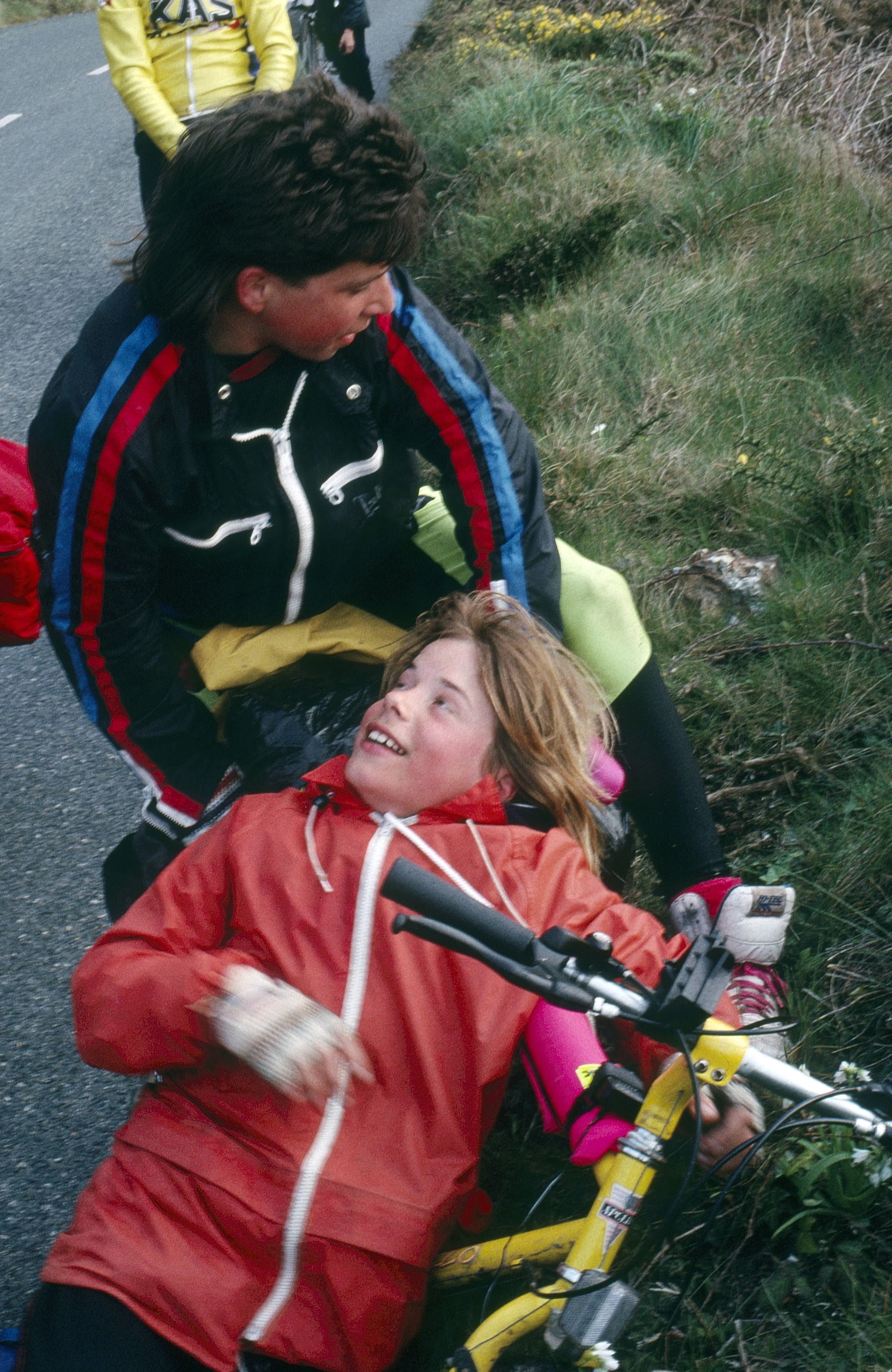 Eugene Tollemache, blown off his bike by vicious crosswinds on North Cliffs.
