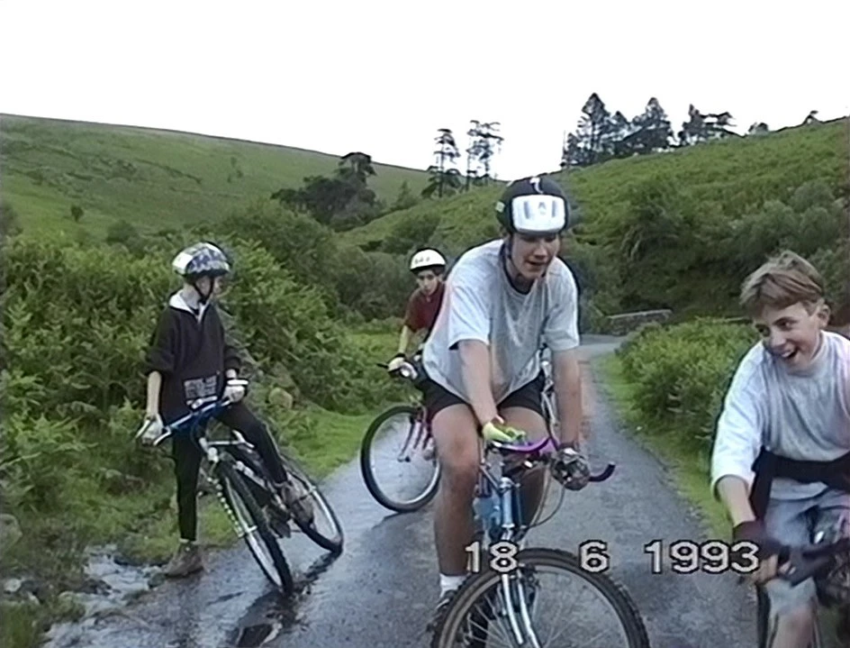 Chris Platt rides in from the right, and loses the slow-bike race!