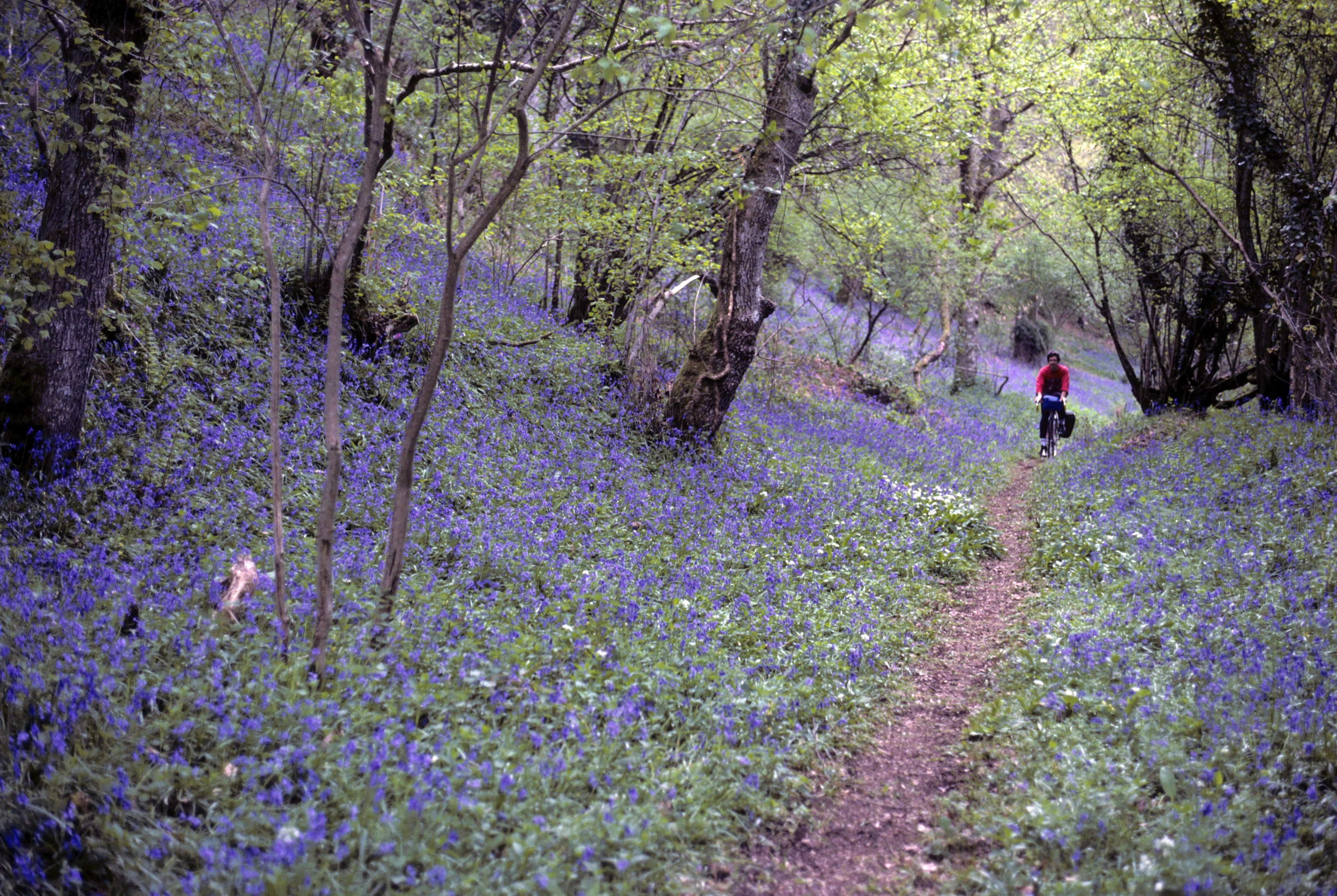 A profusion of bluebells along the woodland track from Steps Bridge.