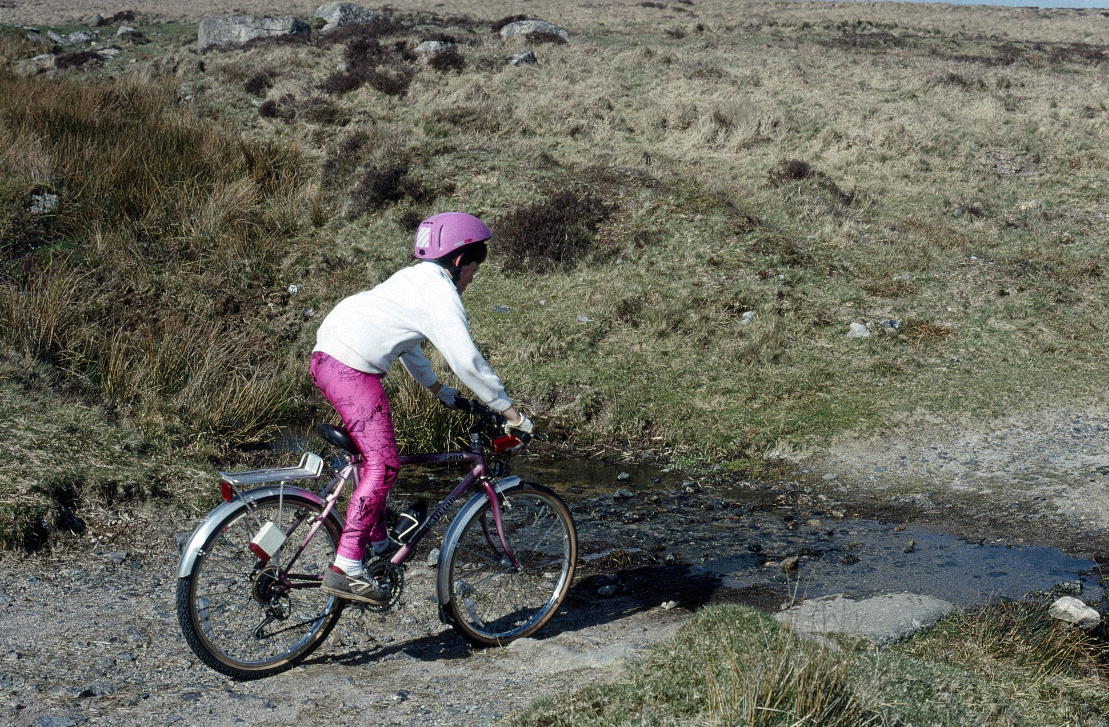 Alan Skinner crosses one of the streams on the bridleway from Burrator to Princetown.