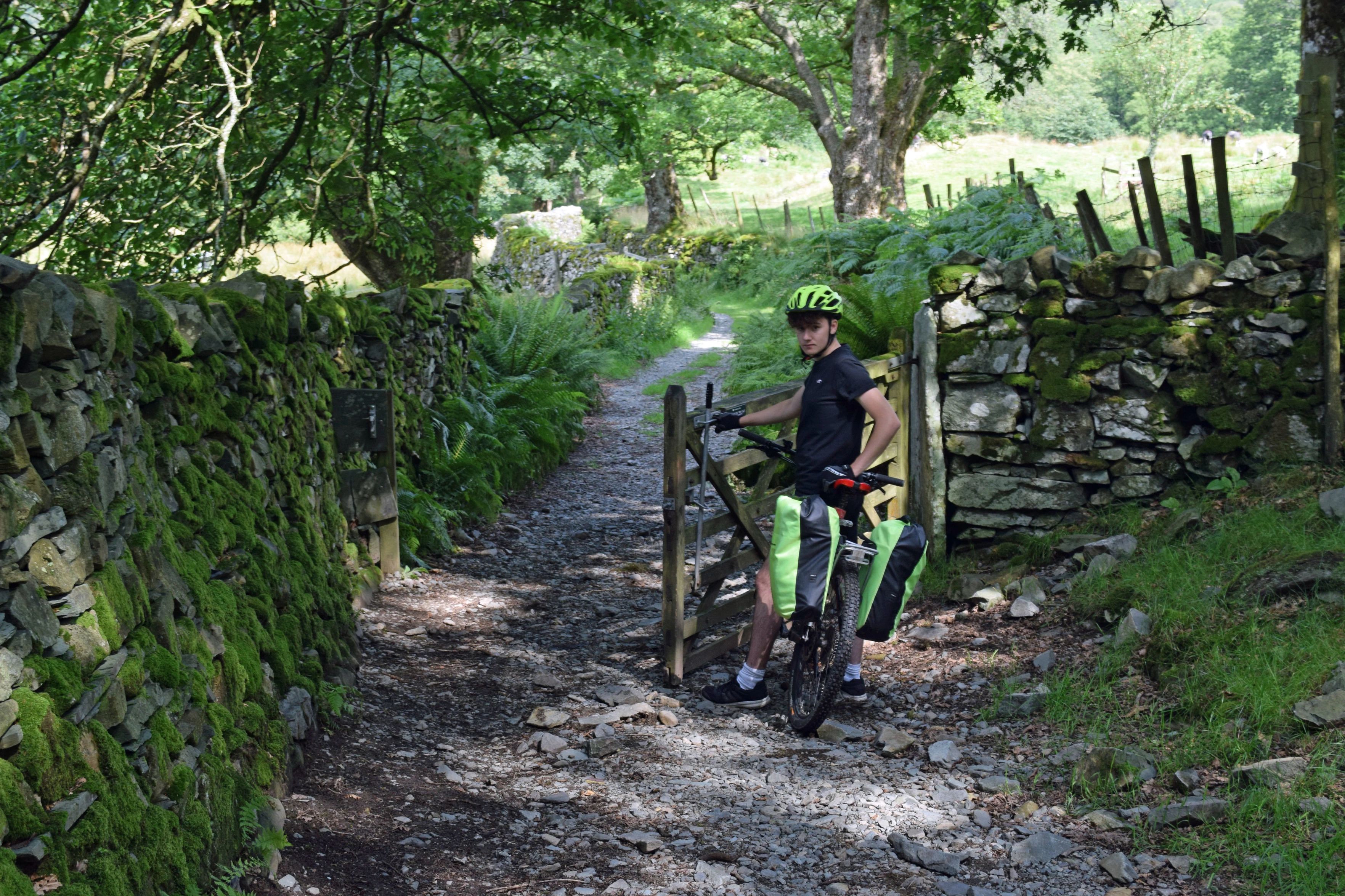 Jude tackles the rough bridleway from Tarn Hows to High Yewdale.