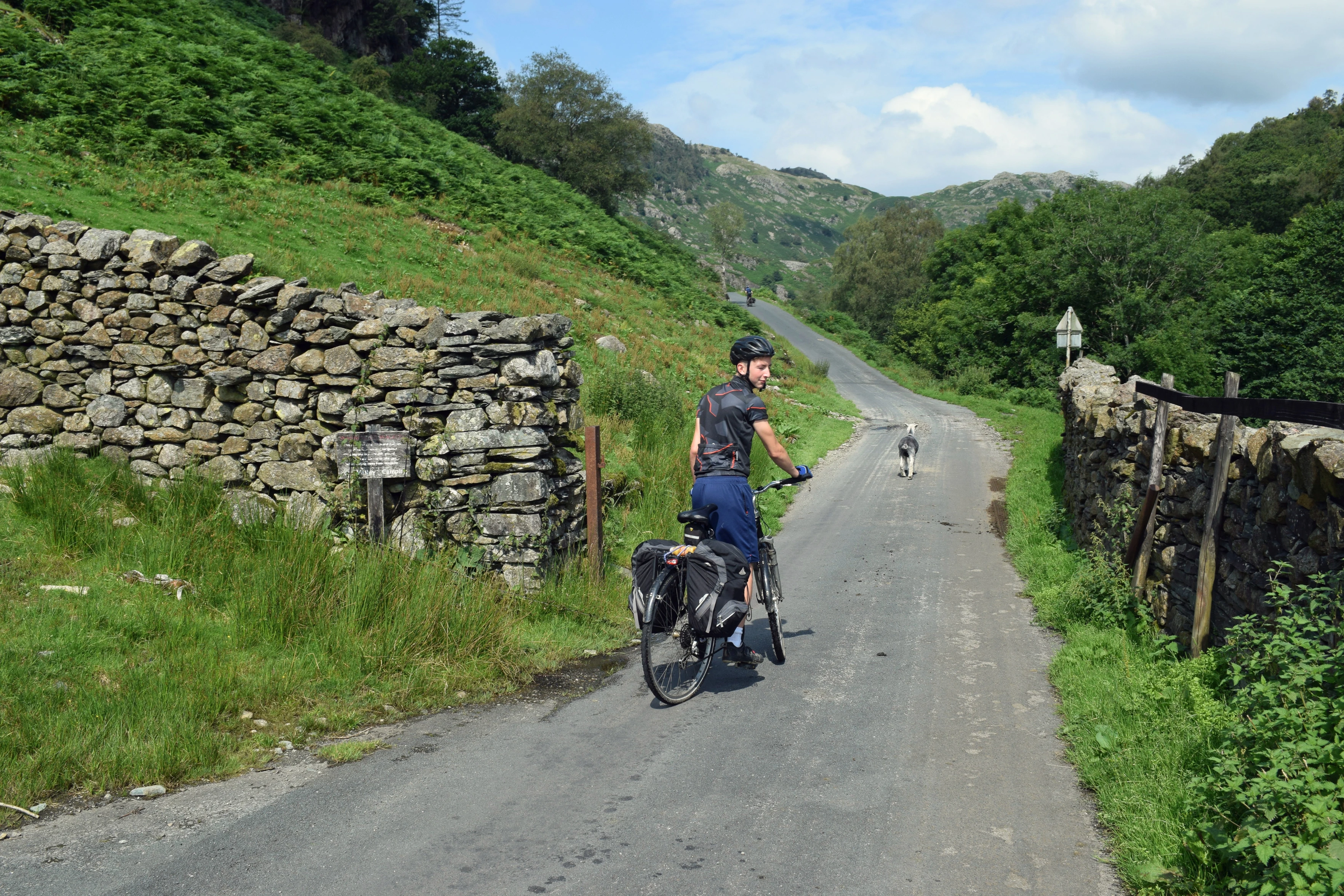 George tries to catch a sheep on the road to High Tilberthwaite.