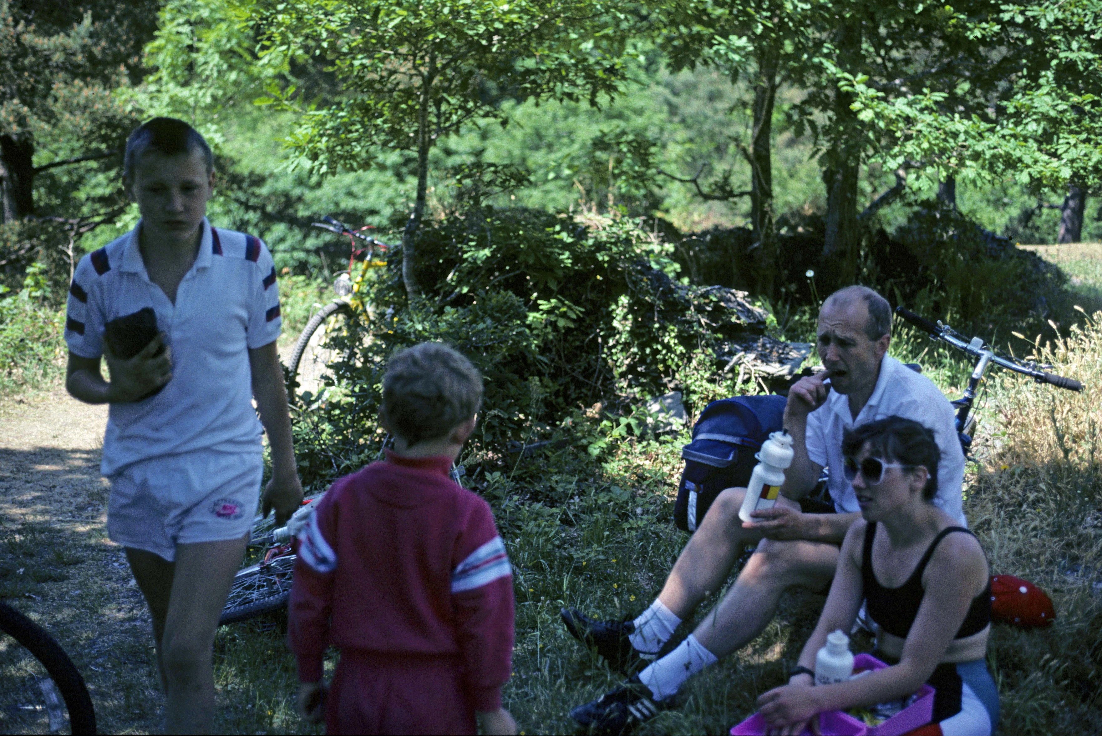 Shane, Paul, Ken and Julie at the Plym Valley Cycleway lunch spot, just before the first viaduct.