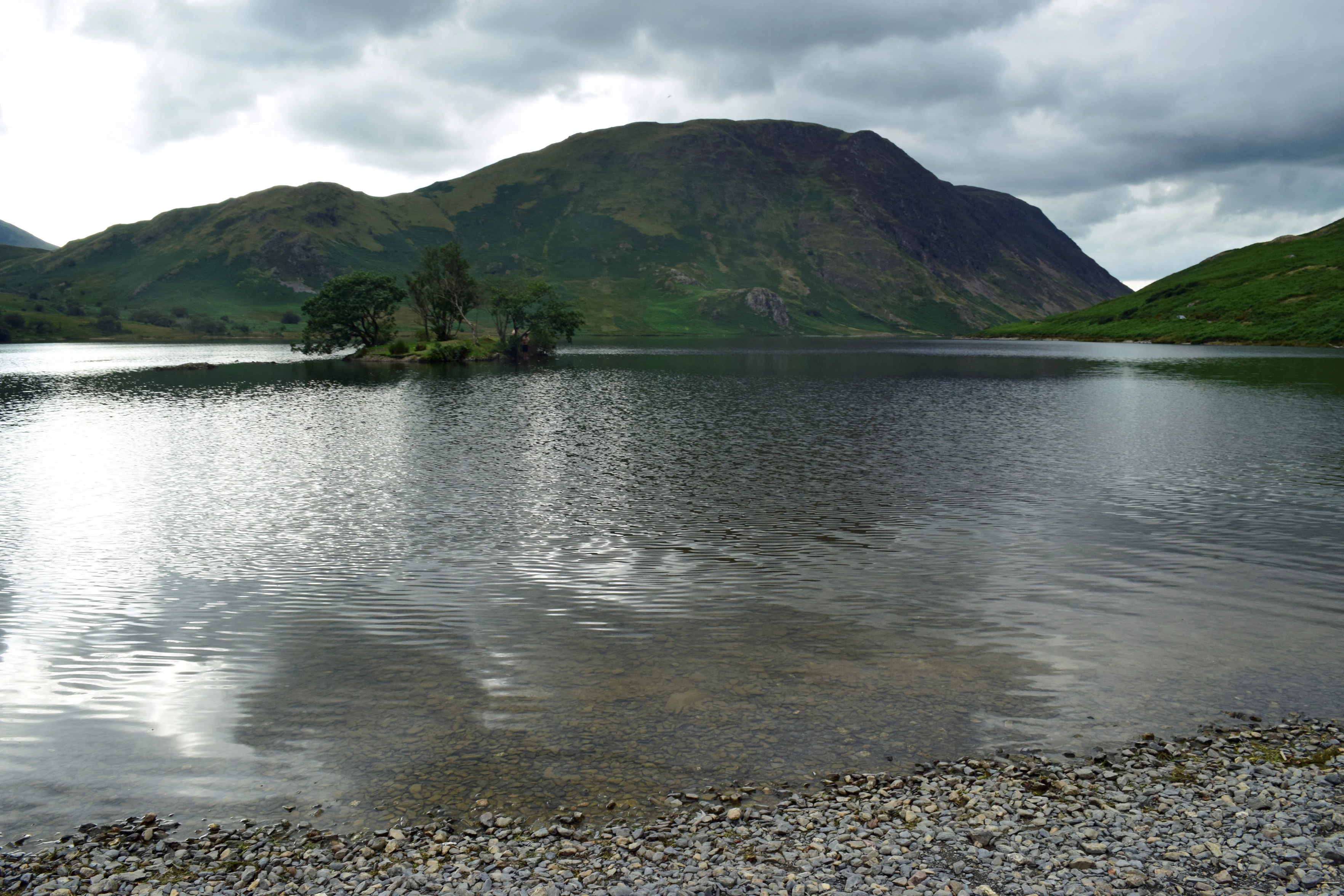 Woodhouse Island seen from the 'beach' at Crummock Water's south-east end