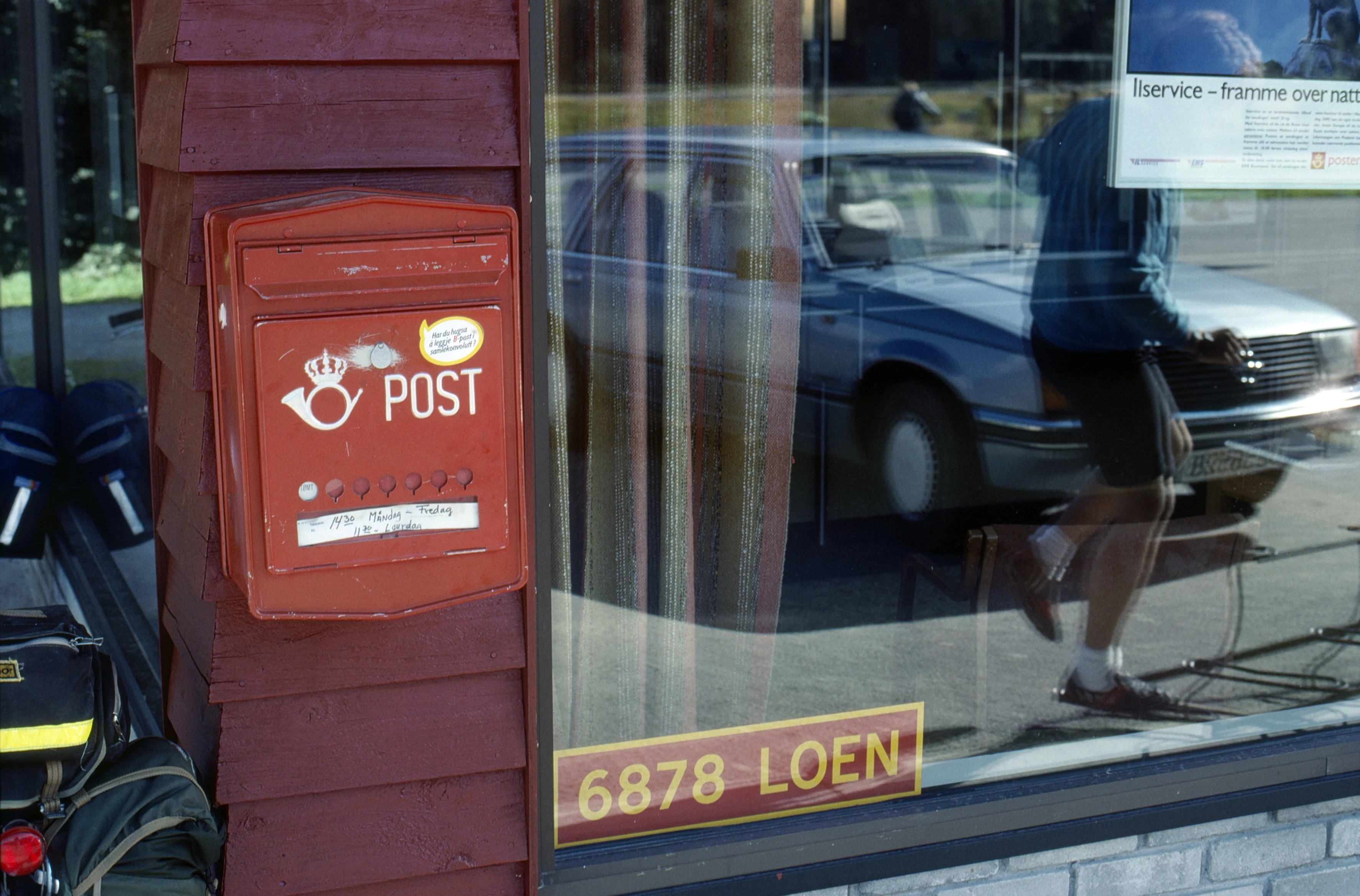Loen Post Office with classic red post box and '6878 Loen' window sign.