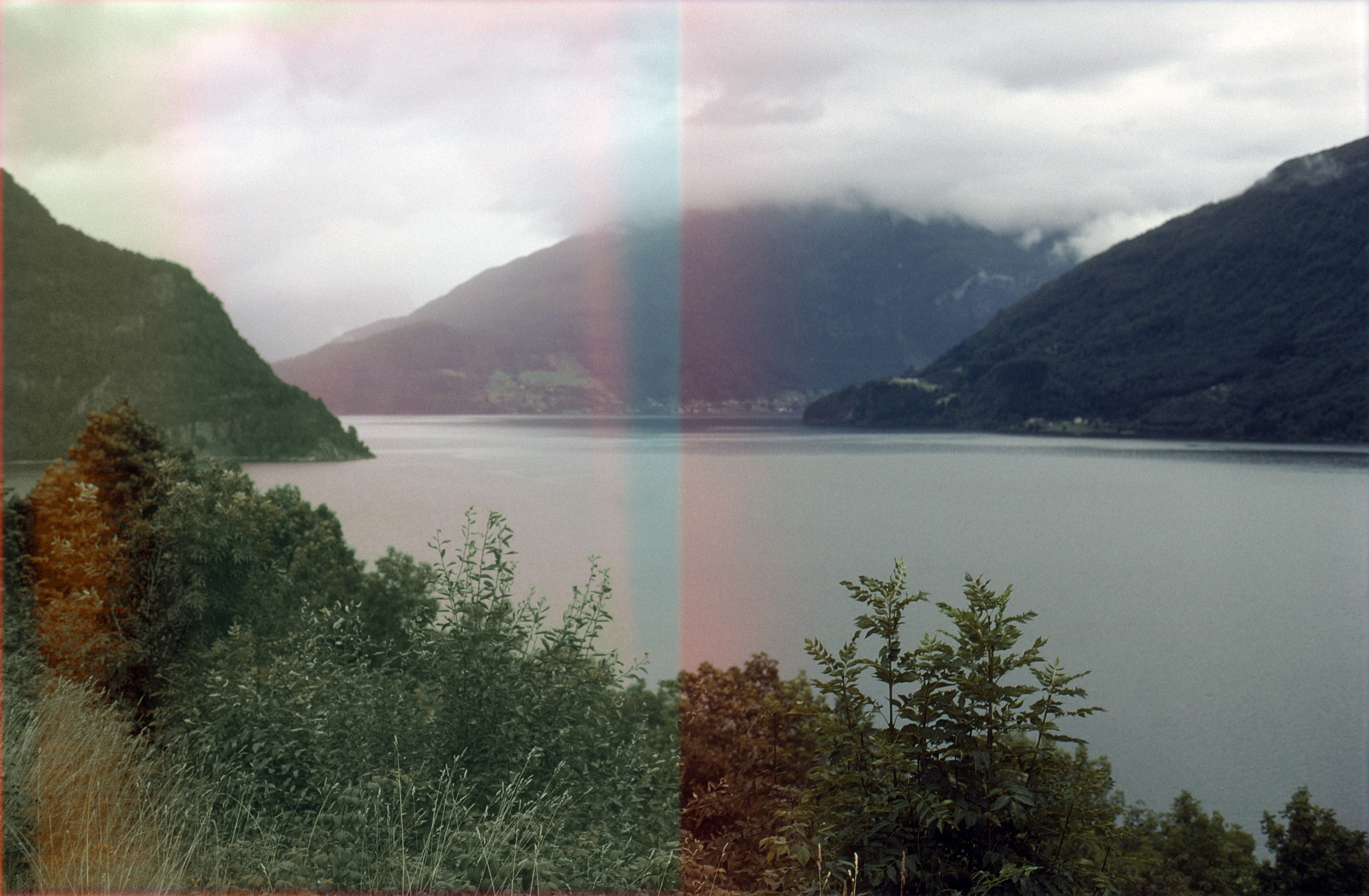 Nordfjord from the Faleide–Stryn coast road; Aarheim coast road left (film damage).