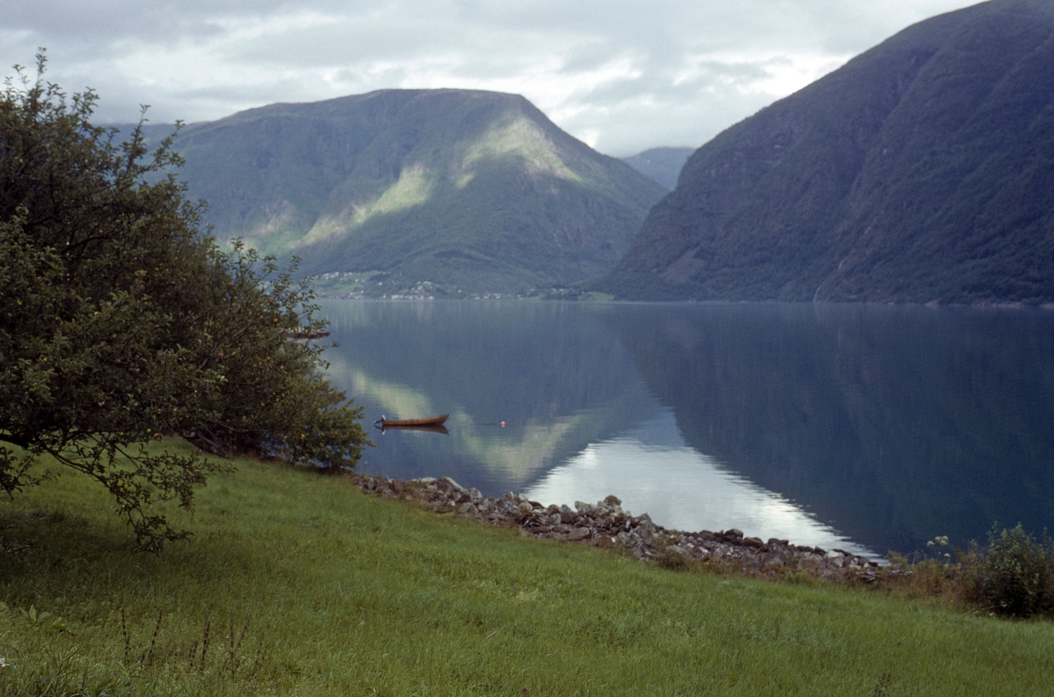 First glimpse of Skjolden at Lustrafjord’s end, taken from Havellenhamn.