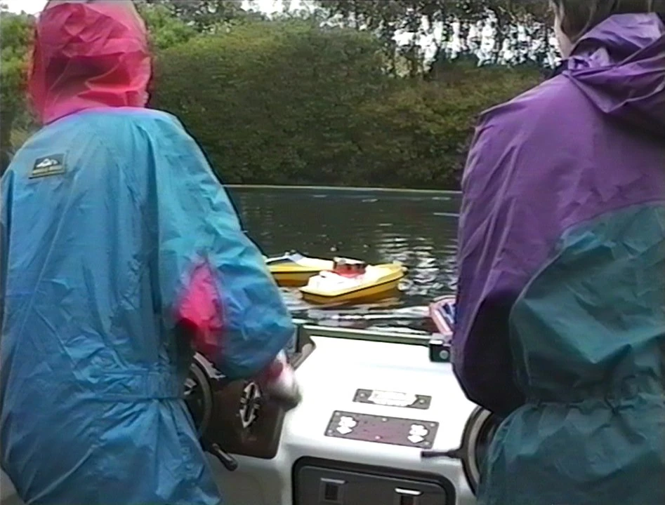 Jordan and Neil steer radio-controlled boats at Goonhavern.