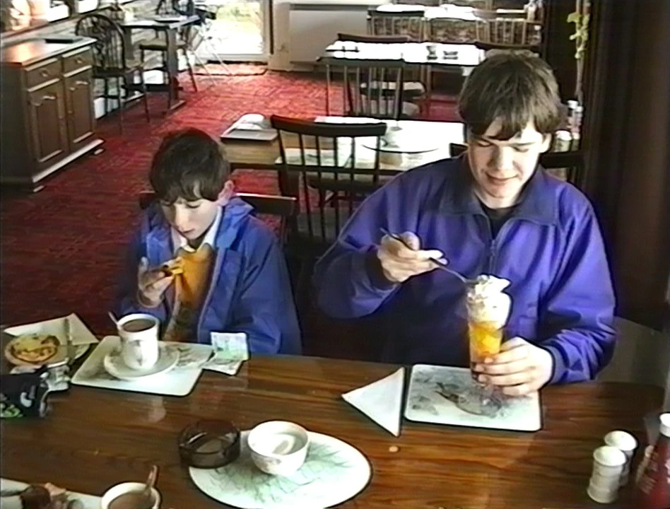 Clyde and Neil enjoy desserts at Bedruthan House Hotel, opposite Bedruthan Steps.