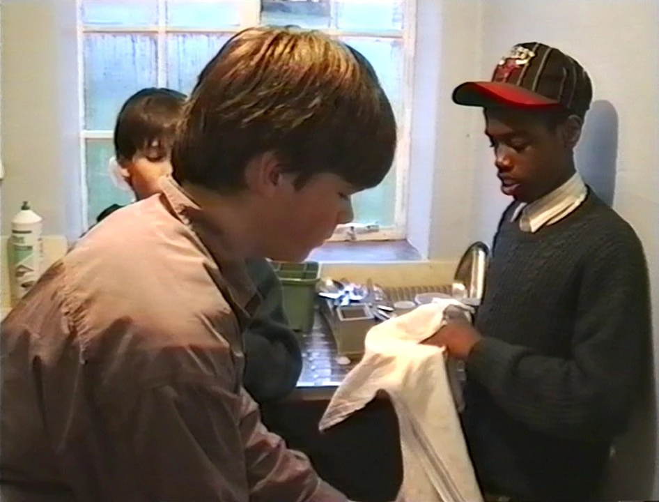 Washing up at Treyarnon Bay Youth Hostel.