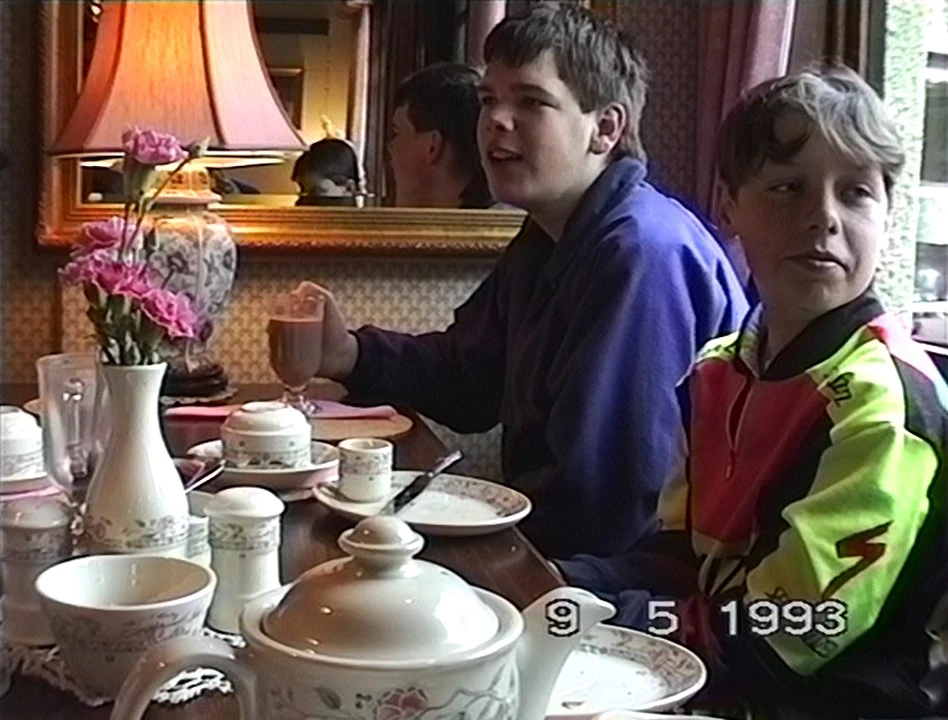 Neil Ault and Eliot at the Primrose Cafe, Lustleigh.