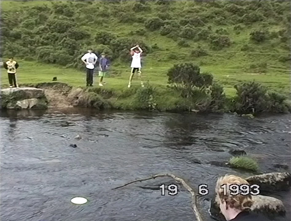Seb gamely fishes the frisbee from the river.