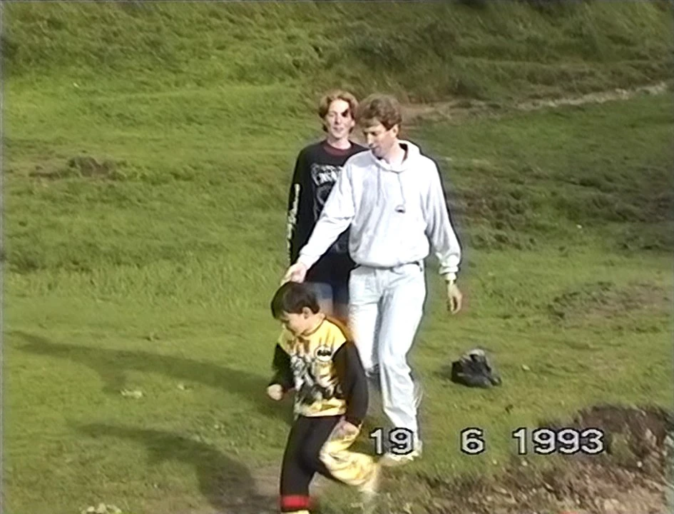 Michael joins the riverside frisbee fun.