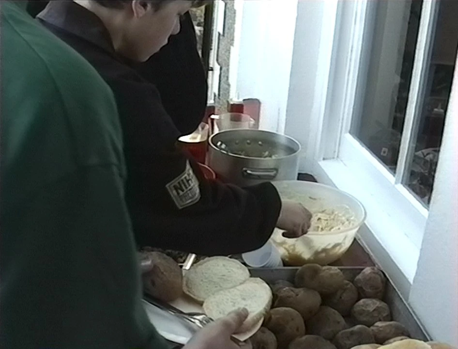 Coverack Youth Hostel barbecue - except Michael, unimpressed by veggie burgers fried in meat fat.