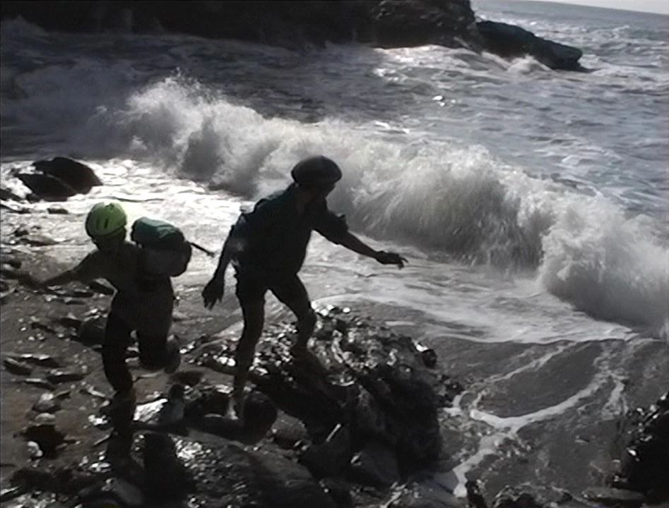 Playing chicken on the tiny ‘beach’ at Bedruthan Steps.