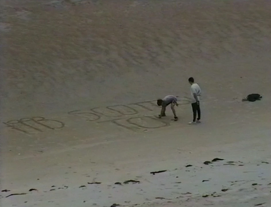 Paul and Richard leave our mark in the sand at Camusdarach Beach.