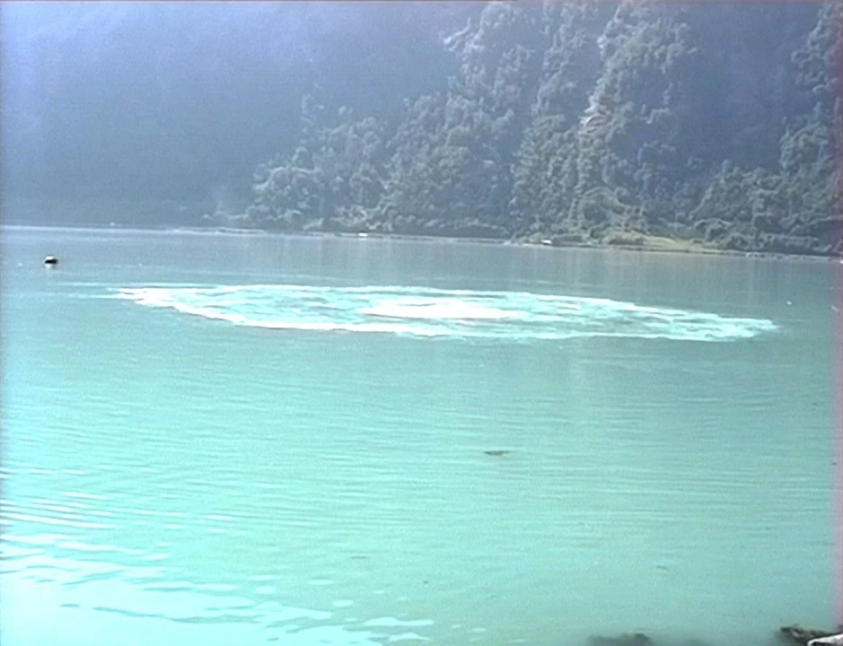 A strange swirling vortex in the fjord near Gaupne