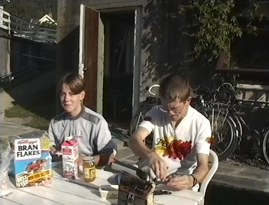 Breakfast outside our room at Skjolden youth hostel, the river metres away.