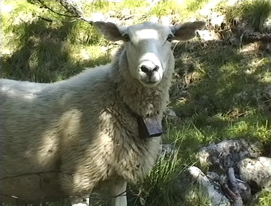Norwegian mountain sheep wear bells—handy when they wander.