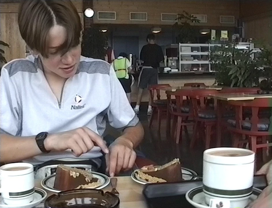 Settling in for chocolate gateaux and coffees at the first‑floor café in Lom.