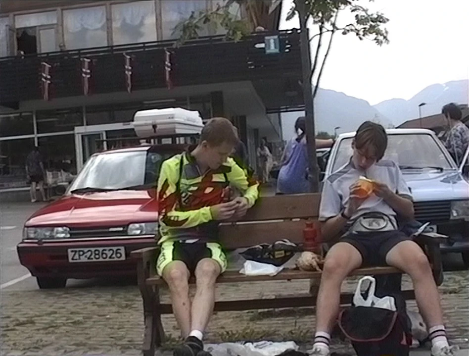 Lunch by Lom’s village square, our first‑floor café behind us.