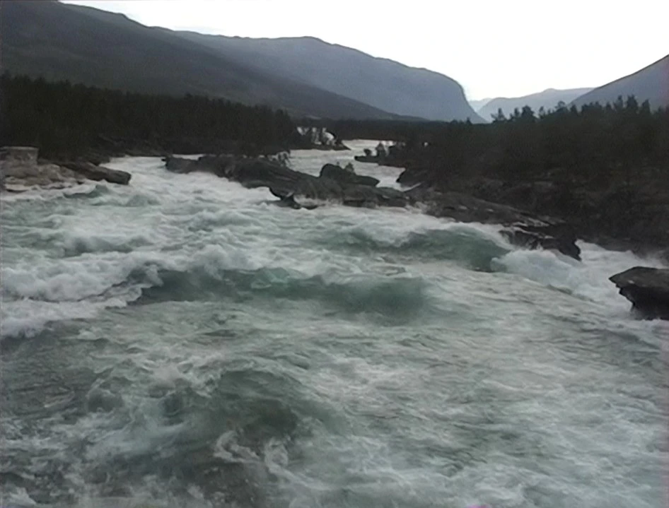 The River Otta at Dønfoss in full flow, 6.6 miles from Skjåk youth hostel.