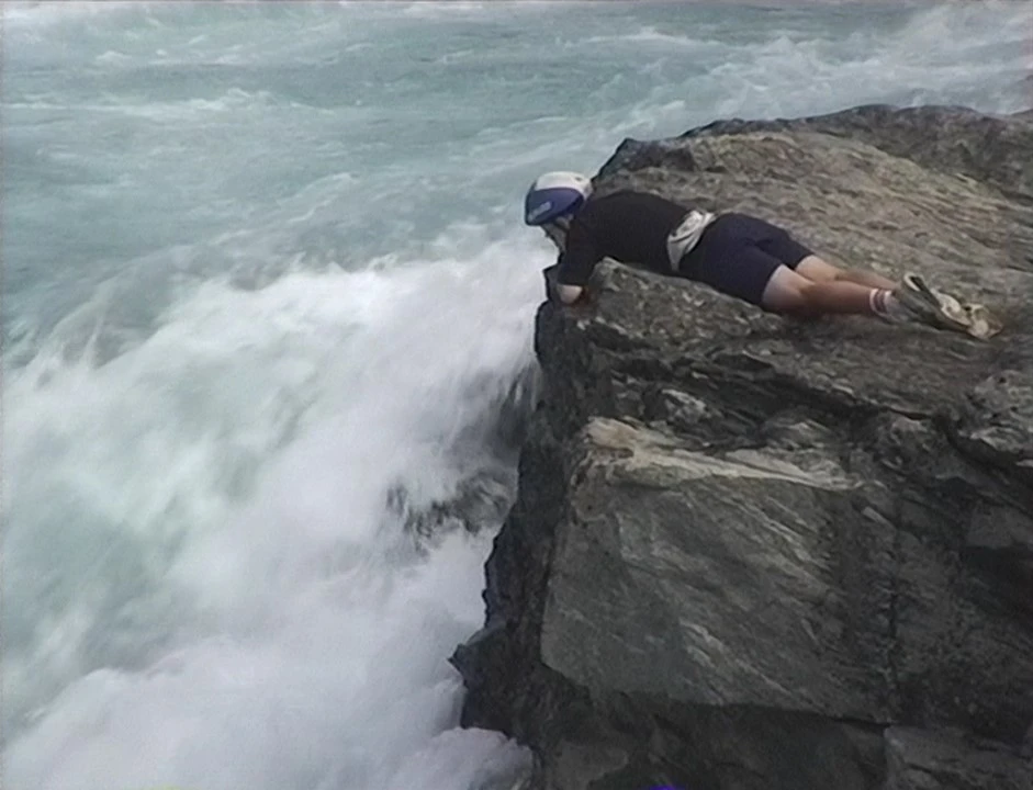 Nick edges close to the roaring water at Pollfoss.