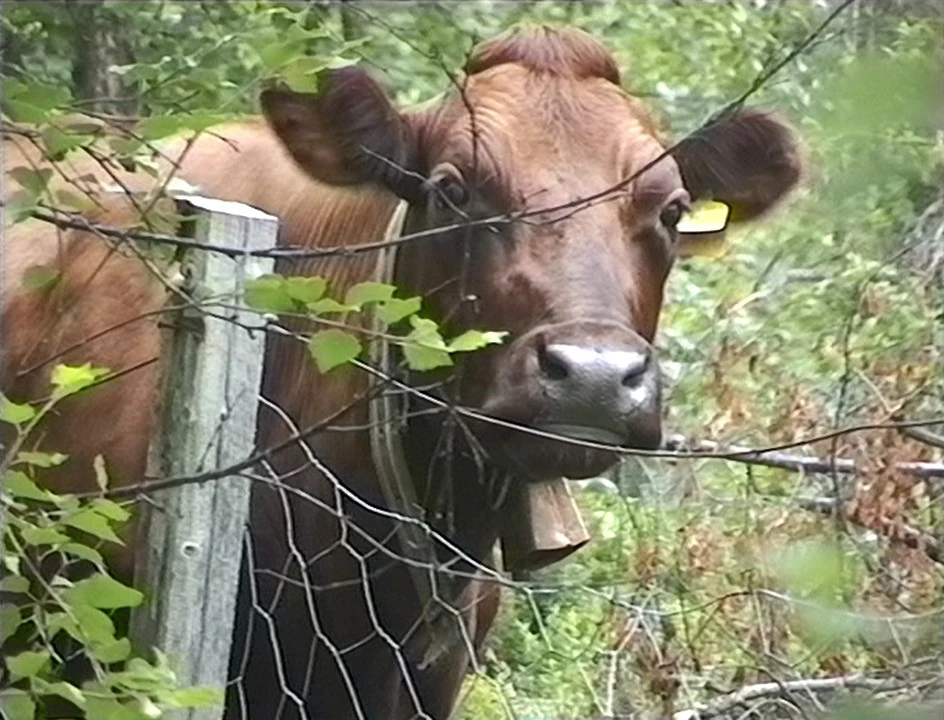 Norwegian cow, bell and all, between Hellesylt and Gjølsgrova