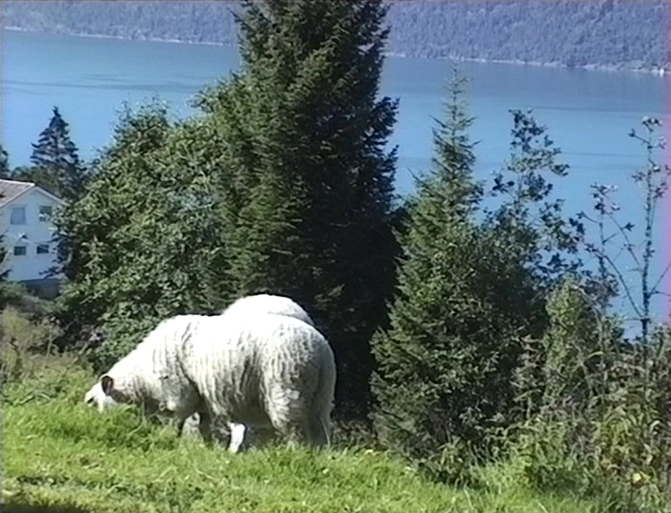 Sheep on the climb from Utvik, with Innvik fjord as backdrop.